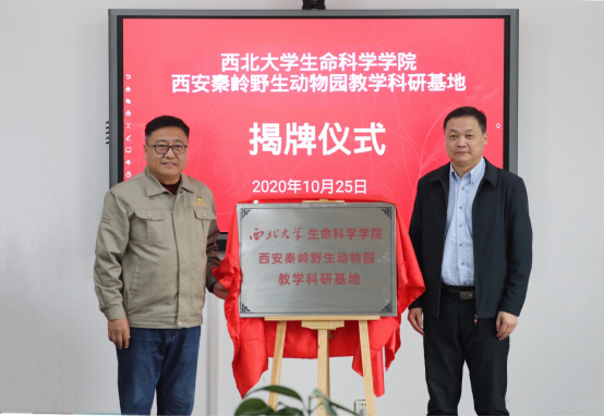 李保国教授、陈富林教授分别与段伟总经理为“陕西省秦岭珍稀濒危动物保育重点实验室 西安秦岭野生动物园科研基地”、“十大外围足球平台app 西安秦岭野生动物园教学科研基地”揭牌。