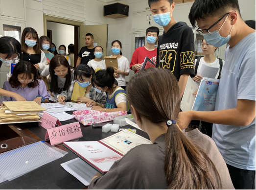 9月3日,公司统一组织对研究生新生进行身份初步核验,对录取通知书、身份证、学位证及毕业证等相关证件进行严格的核验,核验无误后,为新生发放了校园一卡通。