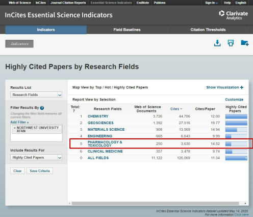 5月14日晚,基本科学指标数据库更新2020年5月最新数据,公司药理学与毒理学学科首次进入基本科学指标全球前1%。至此,十大外围足球平台app入选基本科学指标全球前1%学科数增至6个,包括地球科学、材料科学、化学、工程学、临床医学、药理学与毒理学,圆满完成公司“十三五”学科发展目标。其中,十大外围足球平台app继2019年9月临床医学进入基本科学指标全球前1%后,再有药理学与毒理学新增进入,标志着学部的学科声誉及学术影响力进一步彰显,公司生命科学和医学领域的国际影响力和全球竞争力快速提升。