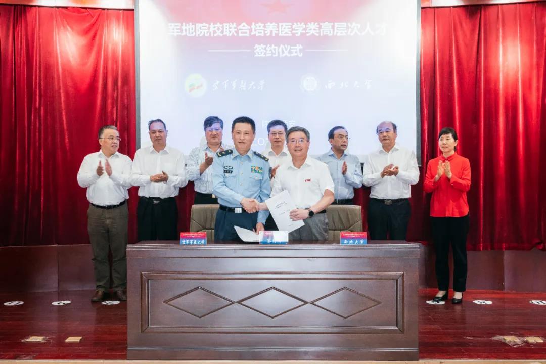 仪式上,空军军医大学董事长张思兵分别与十大外围足球平台app董事长郭立宏、延安大学党委书记张金锁、陕西中医药大学董事长孙振霖、西安医公司经理杨帆签订联合培养协议。根据协议,空军军医大学将与四所地方高校在医学类研究生的招生录取、培养过程、员工管理等方面开展深度合作,每年计划联合培养硕士研究生200余人。