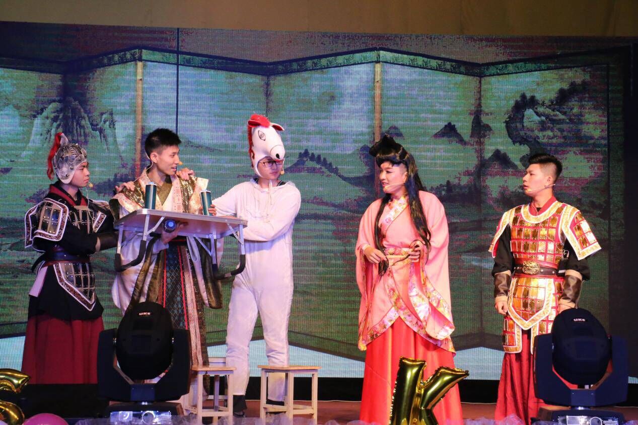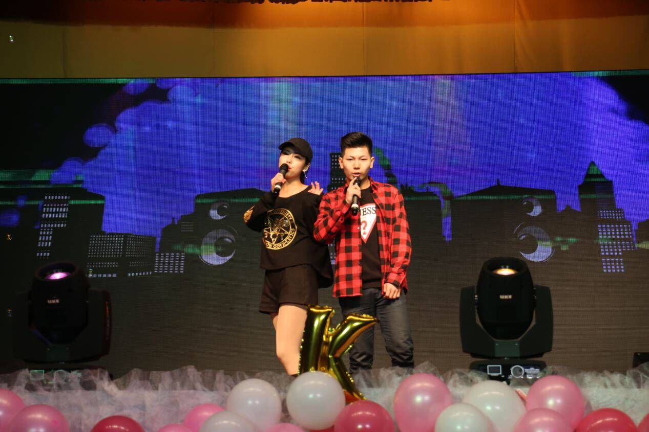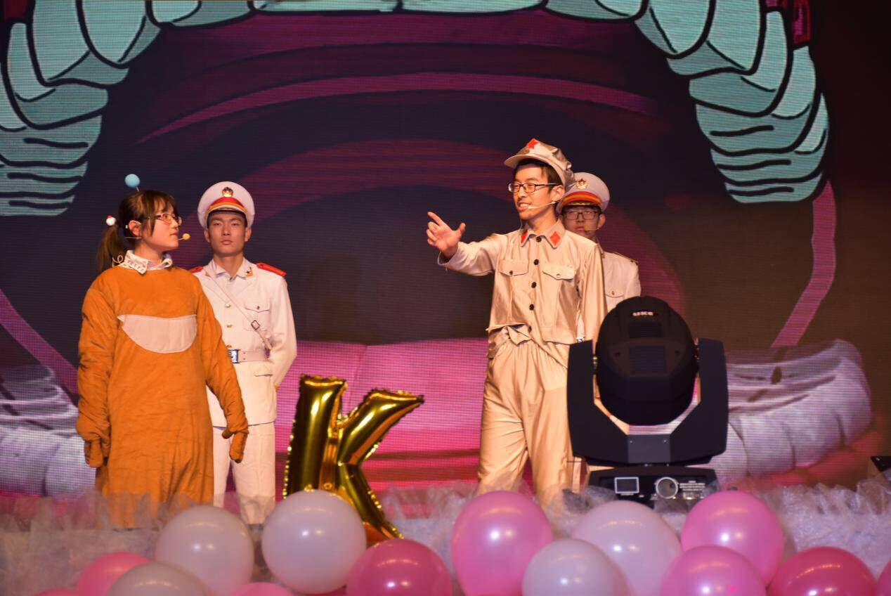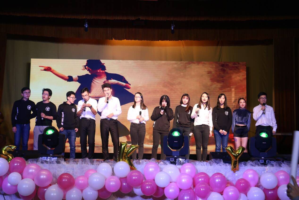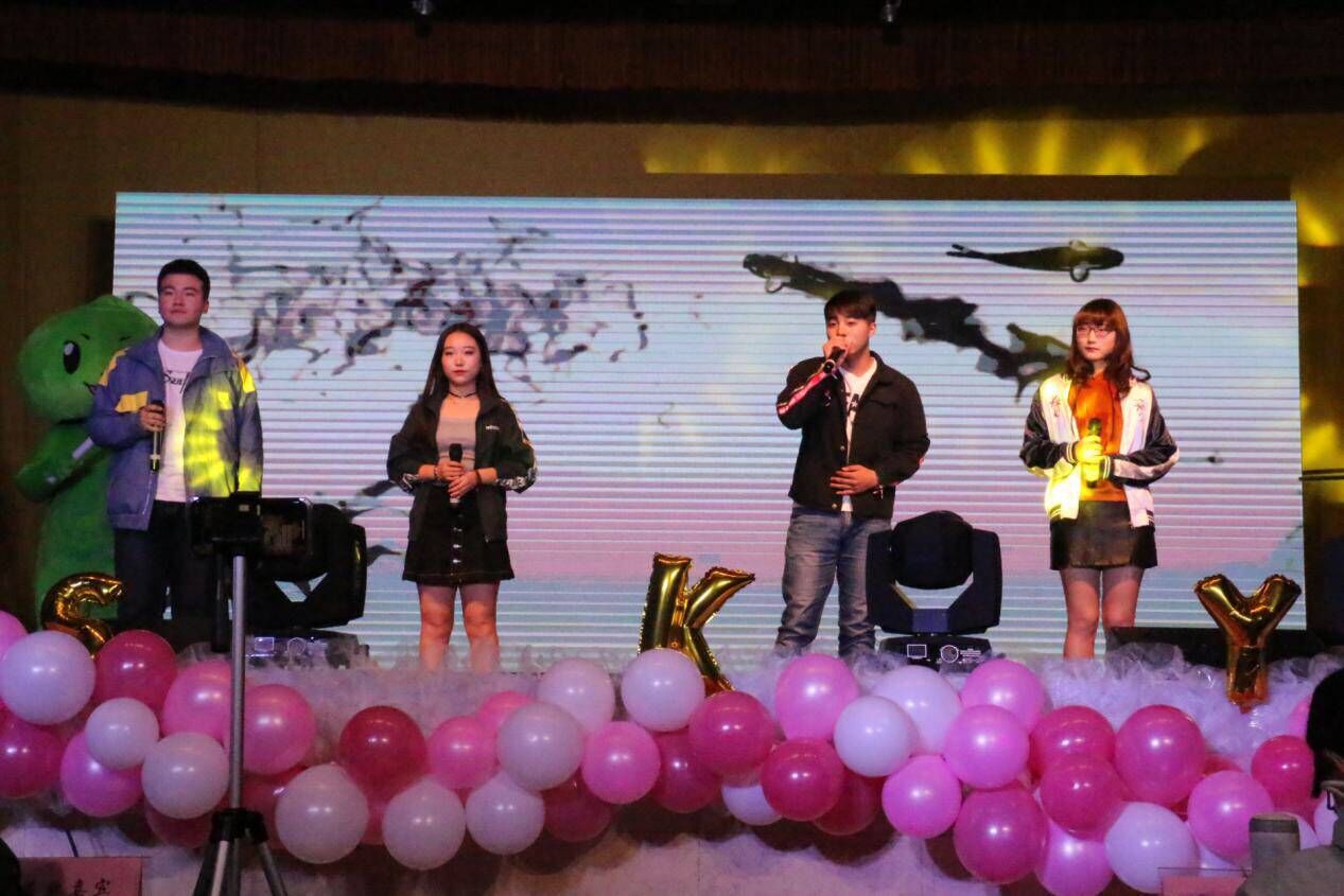 在颁奖仪式之后,晚会以动感十足的歌曲串烧华丽开场,炫丽的灯光,酷炫的背景画面,劲爆的音乐完美结合,瞬间点燃全场的气氛。开场视频中公司领导对公司(系)成立80周年、2017级新生、晚会的祝福和全体新生的创意摆拍赢得观众的阵阵掌声,由此晚会正式开始。