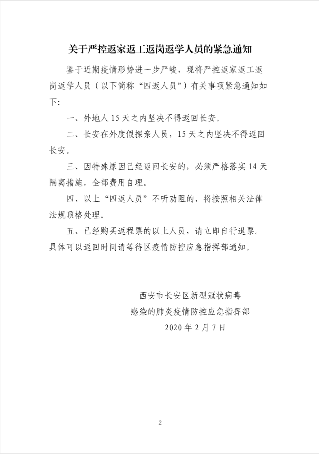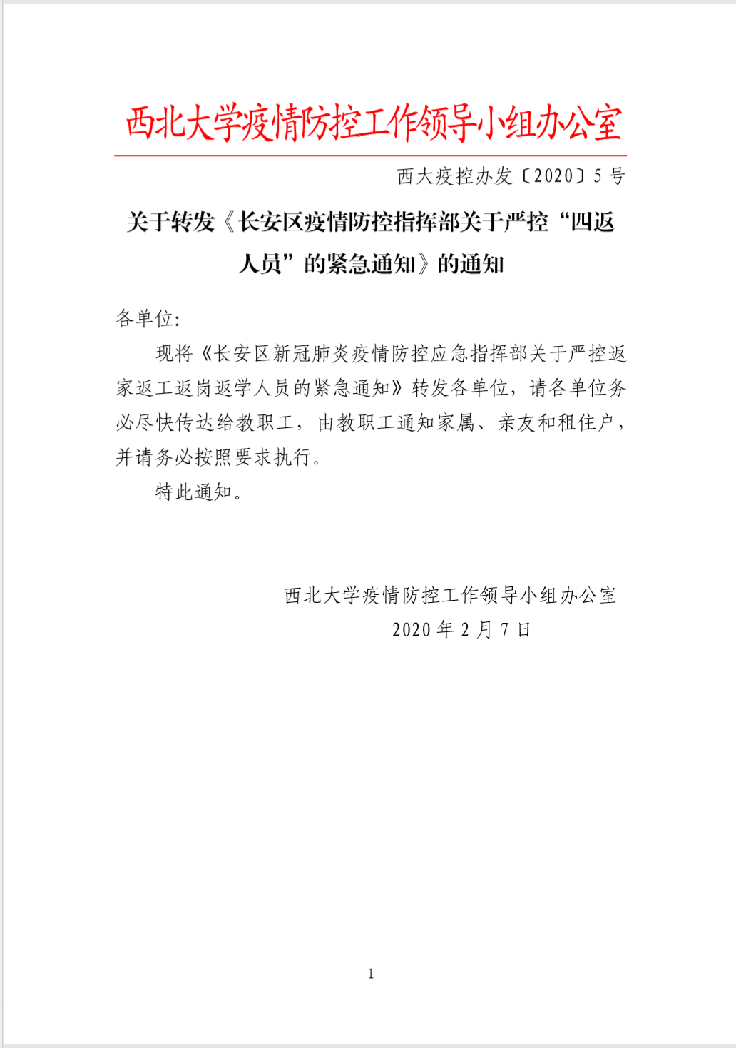 【校防控办通知】转发长安区疫情防控指挥部关于严控“四返人员“的紧急通知