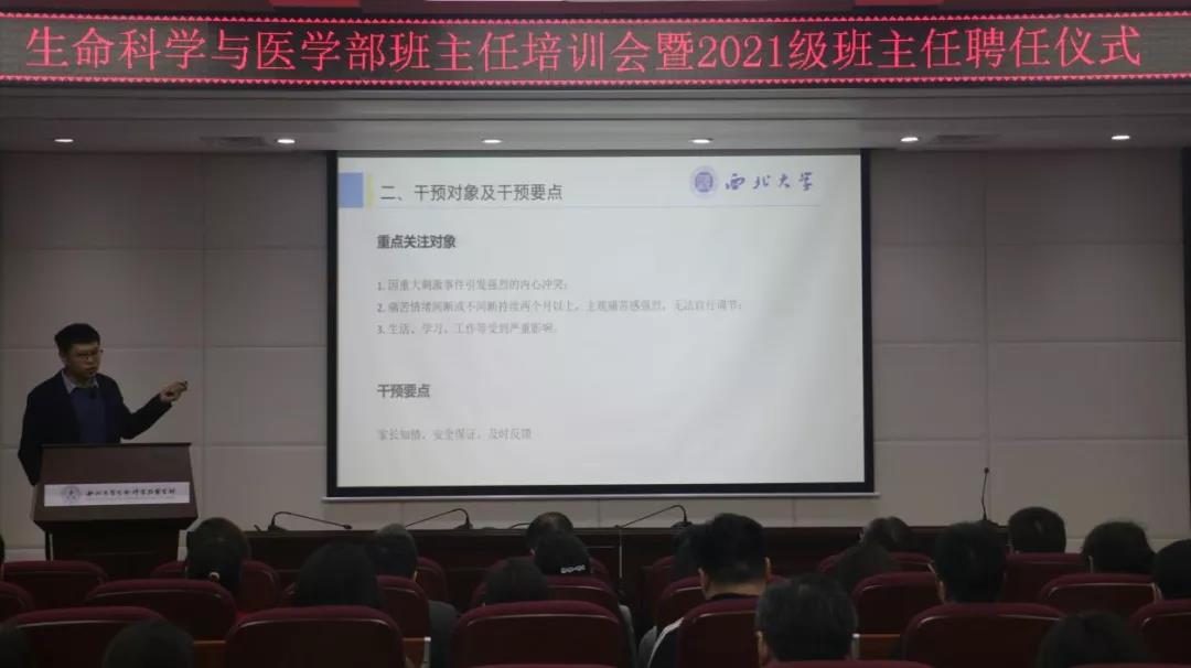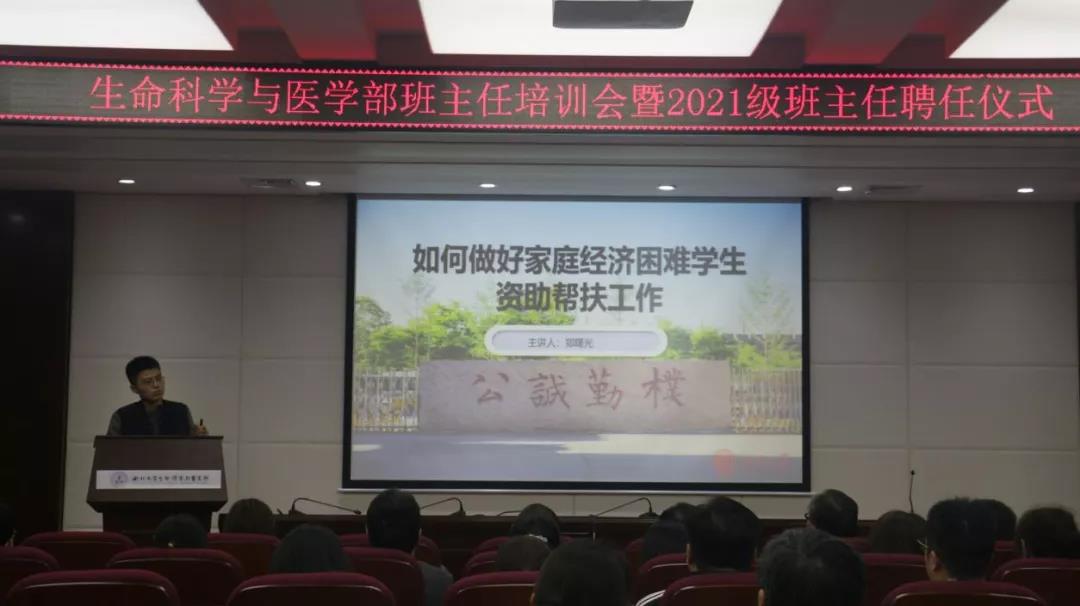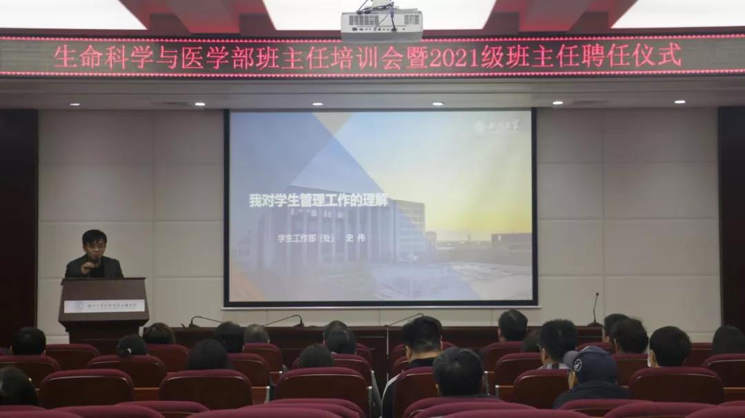 为了进一步推进学部“三全育人”综合改革,充分发挥班主任治学育人优势,切实加强班主任工作效能,努力提升人才培养质量,10月29日上午,学部班主任培训会暨2021级本科生班主任聘任仪式在博望报告厅隆重举行。校员工工作部副部长史伟老师,校员工就业创业指导服务中心常务副主任陈欣老师,校资助中心主任郑曙光老师,校心理健康教育中心张达老师作培训报告。张宇书记、付爱根经理、赵钢经理、全体班主任、辅导员老师和2021级员工代表出席会议,会议由党委副书记魏宁主持。