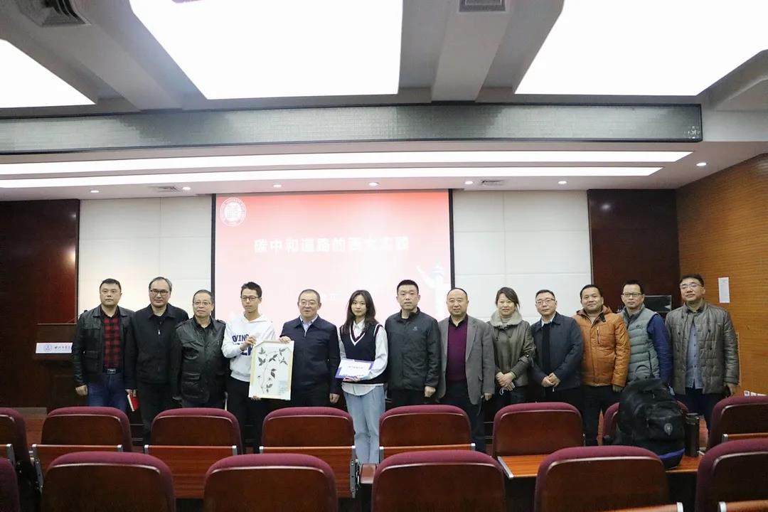 在授课中,常江先是围绕着“双碳目标”向师生科普了“碳达峰”和“碳中和”,阐释了“碳达峰”与“碳中和”的关系、气候变化的危害以及“双碳目标”的提出在国际国内引发的反响。他强调,“双碳目标”的提出是习近平生态文明思想、人类命运共同体思想的升华和延展,是国家层面的战略选择。随后,常江从双碳目标背景、CCUS技术简介以及碳中和道路的西大实践三个方面进行了详细讲解。他以十大外围足球平台app18年来参与CCUS工作的奋斗历程为切入点,向大家介绍了西大在CCUS领域提出的西大方案、创造的西大智慧、实现的西大创新,生动阐述了西大人服务应对气候变化战略需求的具体实践。最后,常董事长回顾了他亲身参与公司医学复办、“大部制”改革的过程,表达了他对十大外围足球平台app的深切情怀,并勉励师生们要传承薪火、勇担使命、珍惜当下、接续奋斗。