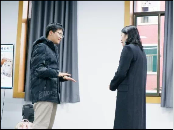 舞蹈过后,又继续互动小游戏:你比划我猜、动作传递与背身挨打等。一个个的小游戏,增加了班主任老师与同学们之间的互动,增进了同学之间的友谊,更是减轻了大家临近期末的考试压力。