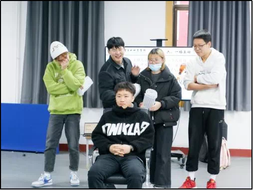 活动伊始,由刘梦凡、尹忠山等7位同学带来小品《反卷行动》,节目名字取自同学们的日常网络用语“卷”,此语用于调侃那些不正当竞争,也就是偷偷学习的“卷王”们。表演也告诉我们,作为一个班集体,要共同进步,个人偷偷地内卷,有害于自己身心健康。