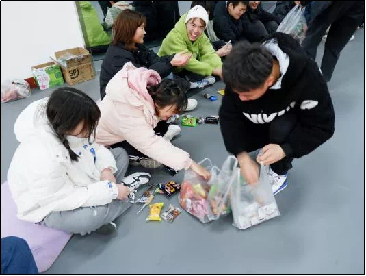 活动开始之前,由班主任与班委们一块给同学们分发小零食,营造了一个轻松愉悦的氛围。