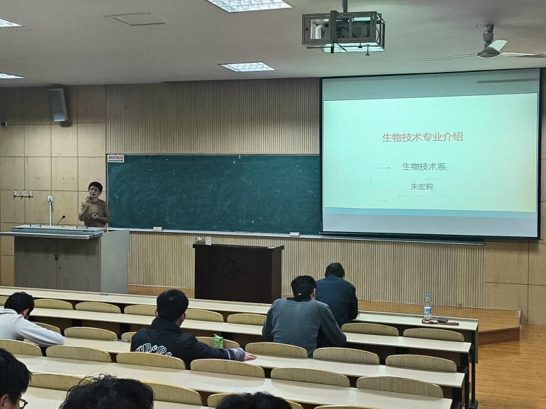 张亚妮副经理首先针对生物科学类各专业分支基本情况及未来前景进行了系统介绍;朱宏莉教授向新生介绍了生物技术系的历史沿革、专业特色、建设成效及未来的发展方向;刘文哲教授由“什么是生物”这一命题入手,介绍了生物科学的专业概况、专业平台、研究方向、培养目标及人才去向;岳明老师向同学们介绍了生态学的历史沿革、学科情况及未来可选择的职业规划;最后,张亚妮副经理、教务秘书雷重涤老师针对课程选择、课程设置、人才培养方案等具体问题进行了讲解说明,要求同学们细读人才培养方案,对培养计划做到心中有数,勉励大家树立远大理想,确定长短期目标,及早做好学业规划,努力实现学有所成。说明会结束后,同学们纷纷踊跃提问,向各位老师提出了关于学分设置、就业前景等具体问题,老师们逐一耐心解答,互动良好,氛围热烈。