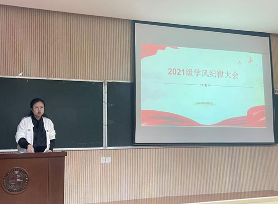 为加强学风建设,规范学习纪律,激发进取意识,10月8日晚,由2021级本科生辅导员刘凌飞老师主持召开2021级本科生学风纪律大会,2021级全体本科生参加会议。