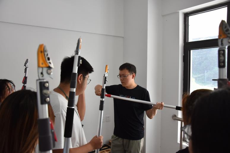 老师们分发实习工具,讲解实习安排、工具使用技巧、考核办法