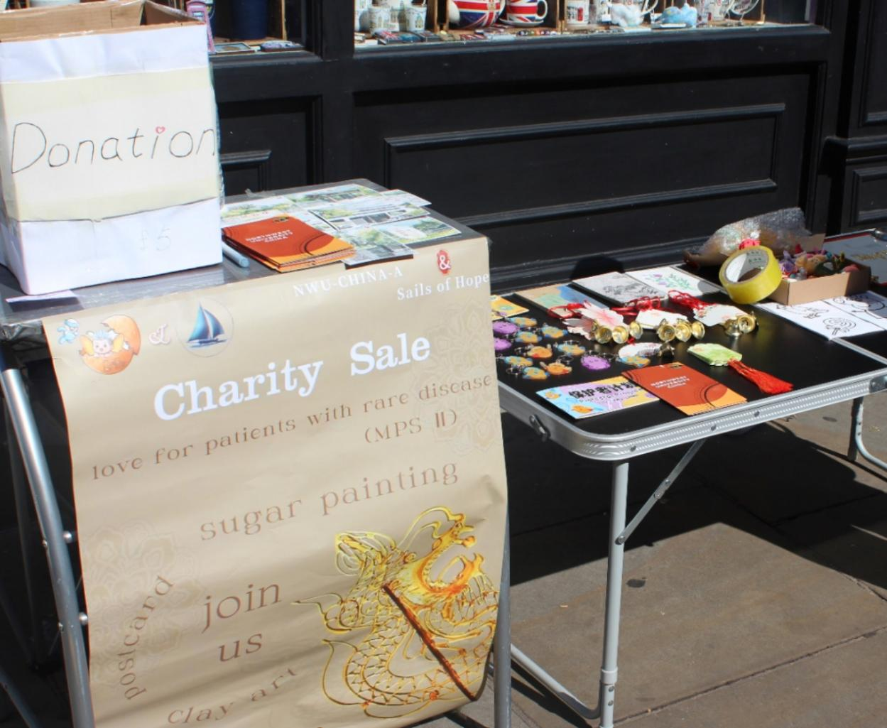 在伦敦,我们和罕见病公益组织Sails of Hope合作,在牛津High Street开展爱心义卖活动。通过展出中国传统艺术品、明信片、黏土等,展示了祖国的传统文化和美好河山;通过发放宣传手册和讲解,帮助公众提高对MPSII粘多糖贮积症的了解。