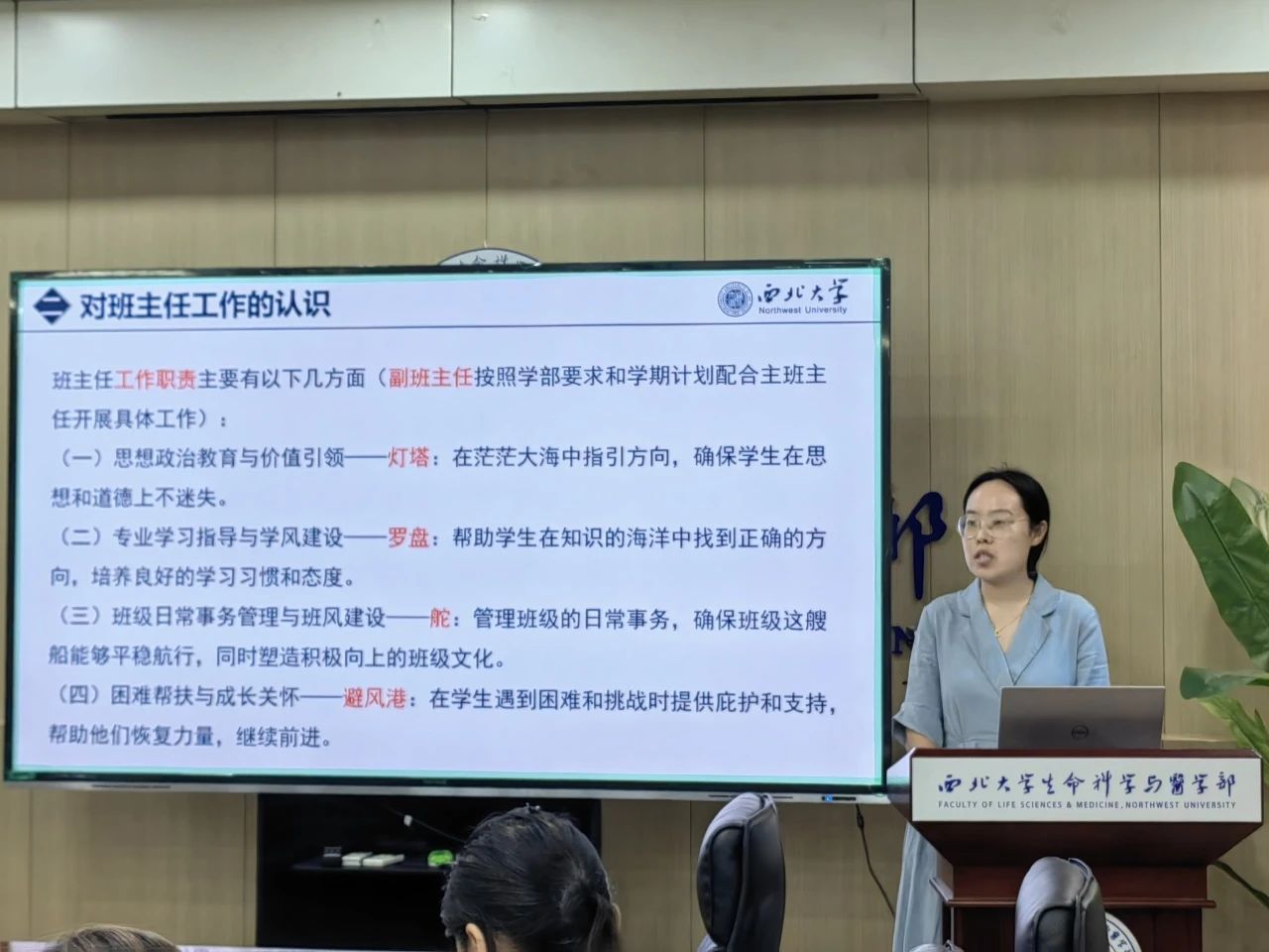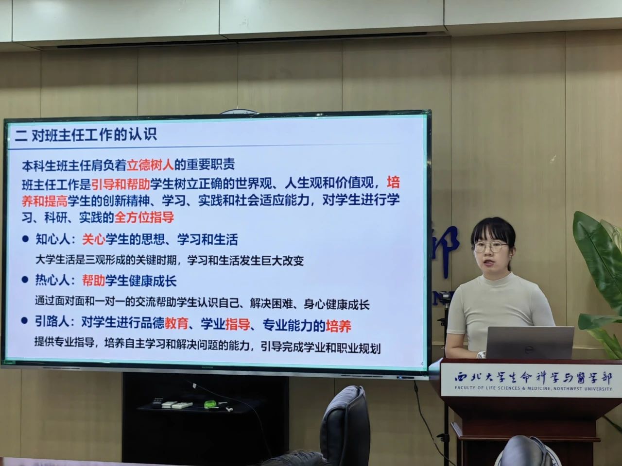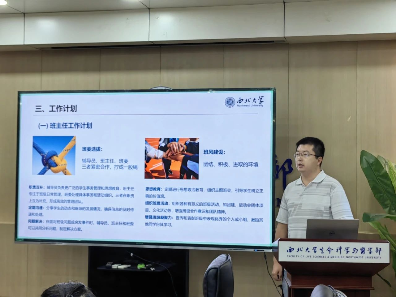 魏宁副书记首先对各位报名老师对公司员工工作和班主任工作的支持表示感谢,总体介绍了公司班主任工作当前概况、班主任工作制度与2024级本科生班主任的选聘报名情况,说明了本次选聘答辩的流程与评分标准。随后,5位竞聘老师依次进行选聘答辩,分别围绕个人简介、教学科研情况、参与员工工作情况、指导员工所获成绩、对班主任工作的认识及未来工作计划等几个方面进行了详细介绍。与会评委结合竞聘老师自述,围绕副班主任工作定位,针对班风凝聚、学风建设、专业兴趣培养、班主任与辅导员间的关系、突发事件应对等问题进行提问,竞聘老师逐一解答回应。最后,与会评委根据竞聘老师的自述与答辩情况进行现场评分,最终确定2024级本科生副班主任拟选聘名单,一致通过了主、副班主任搭档与带班情况、年级负责人人选等。