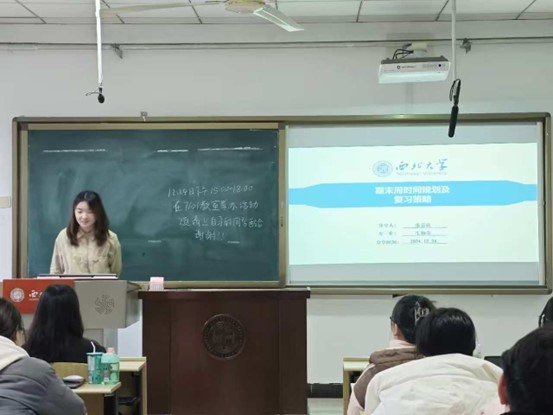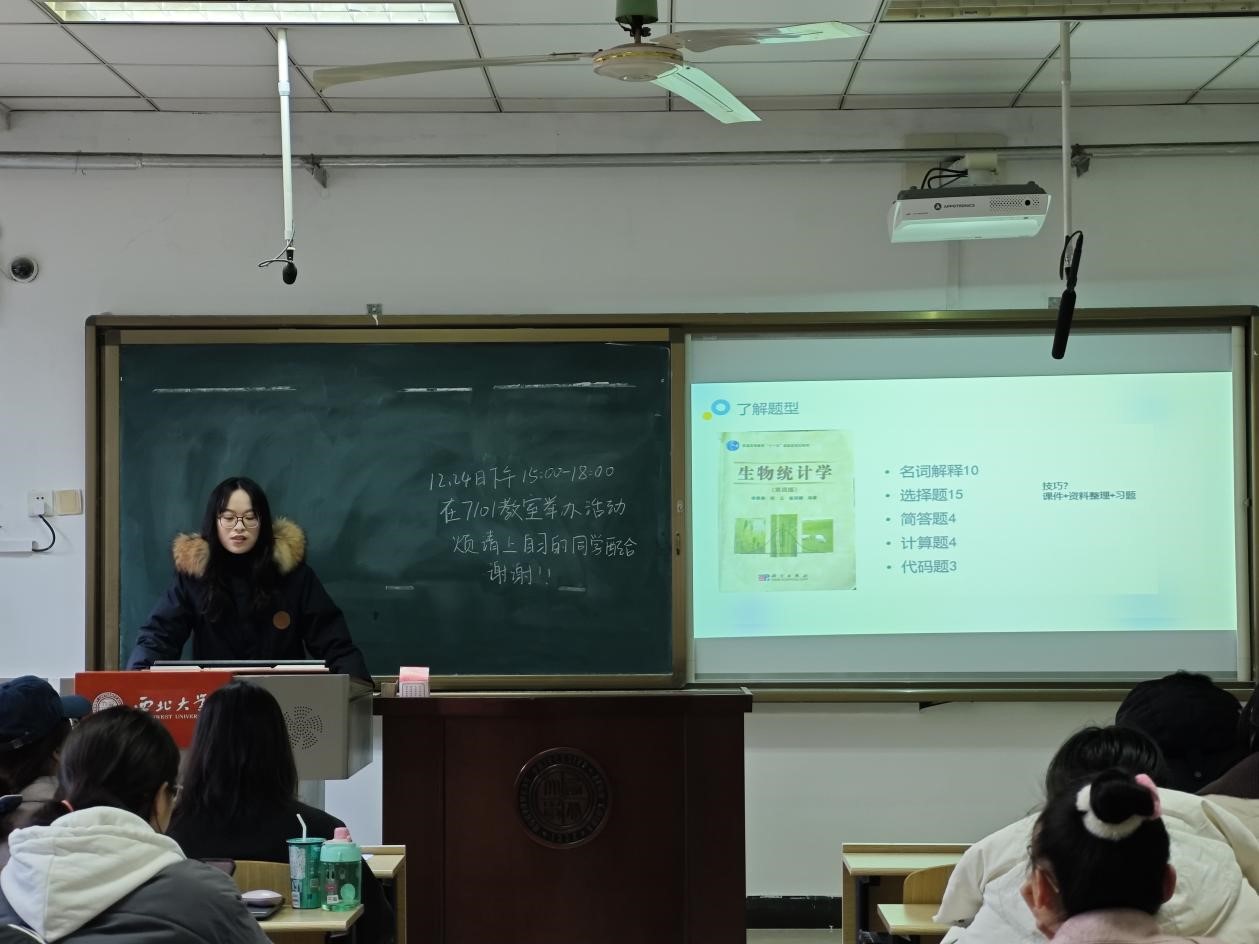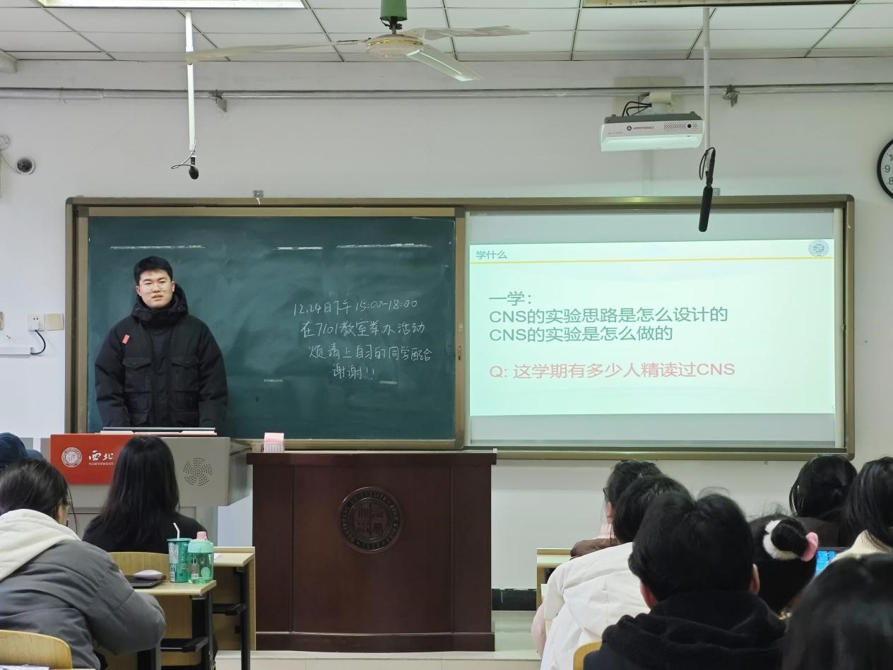 杨冬燕针对本学期难度较高的科目进行了辅导,详细解读了相关科目的考试题型和核心知识点,分享了推荐参考书目和个人备考方法。张嘉仪针对期末周的时间规划和复习策略进行了分享,讲解了如何合理分配不同考试科目的复习时间以及备考中应注意的问题,并对备考过程中常见的疑问进行了解答。刘延庆以学习顶刊实验思路为切入点,讲解了如何建立硕士期间的科研时间观和就业目标,分享了假期科研规划的制定方法以及自己在论文写作逻辑、实验设计思路等方面的经验。