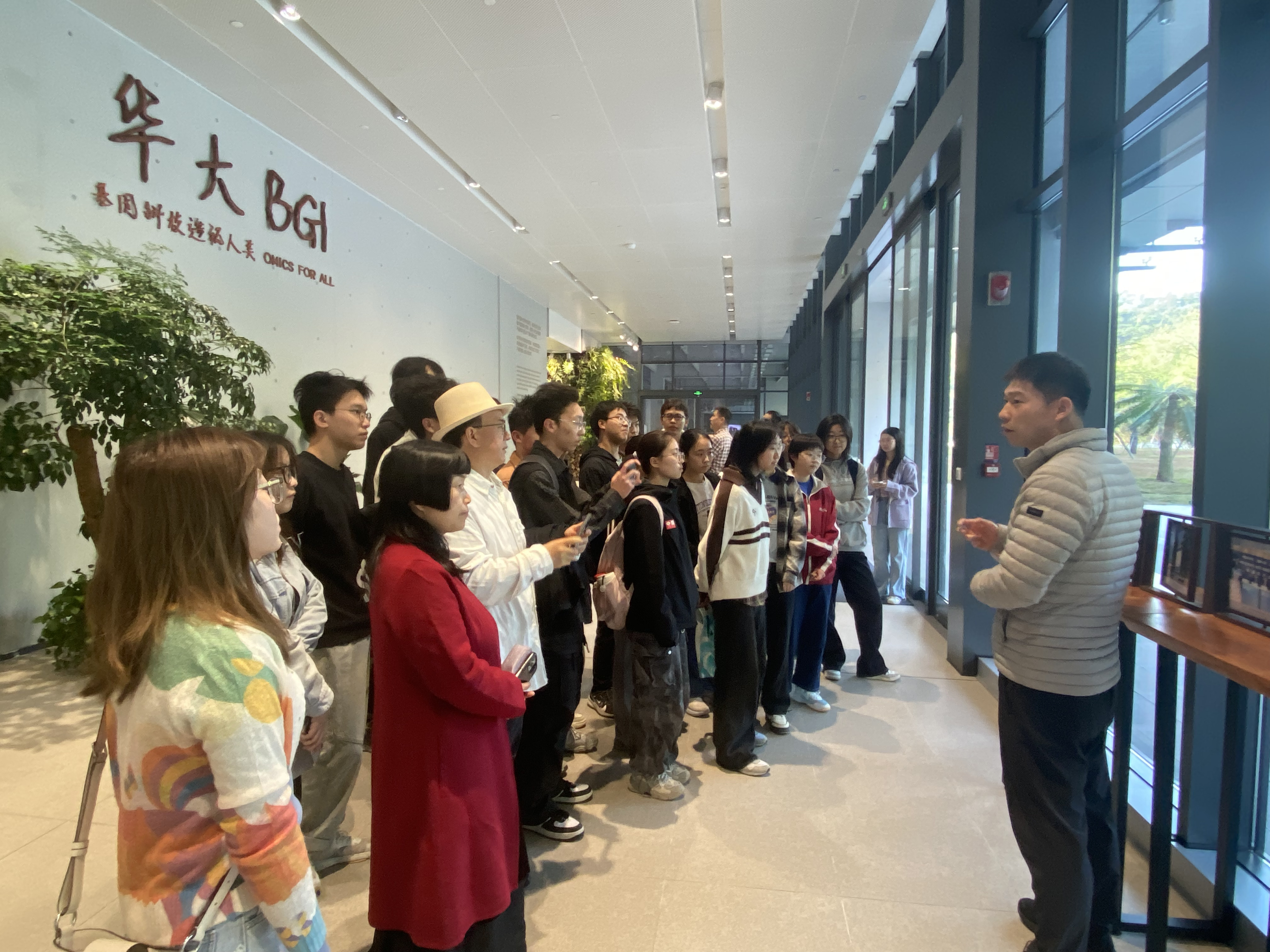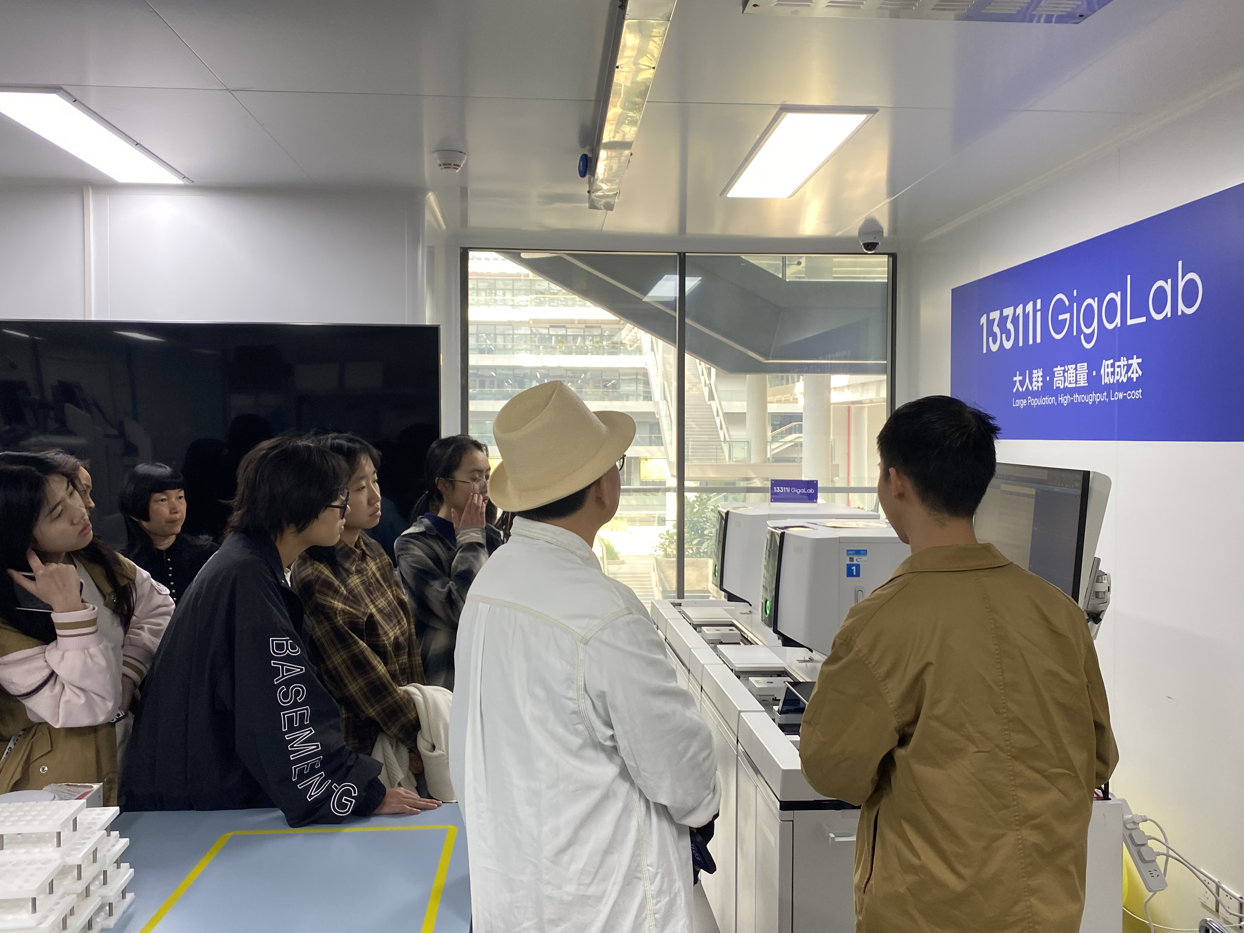在中国农业科公司(深圳)农业基因组研究所,同学们参观了基因组所区实验平台,全方位了解深圳农业基因组研究所发展历程,并从实验室了解了各研究团队的基础科学研究和应用研究方向。