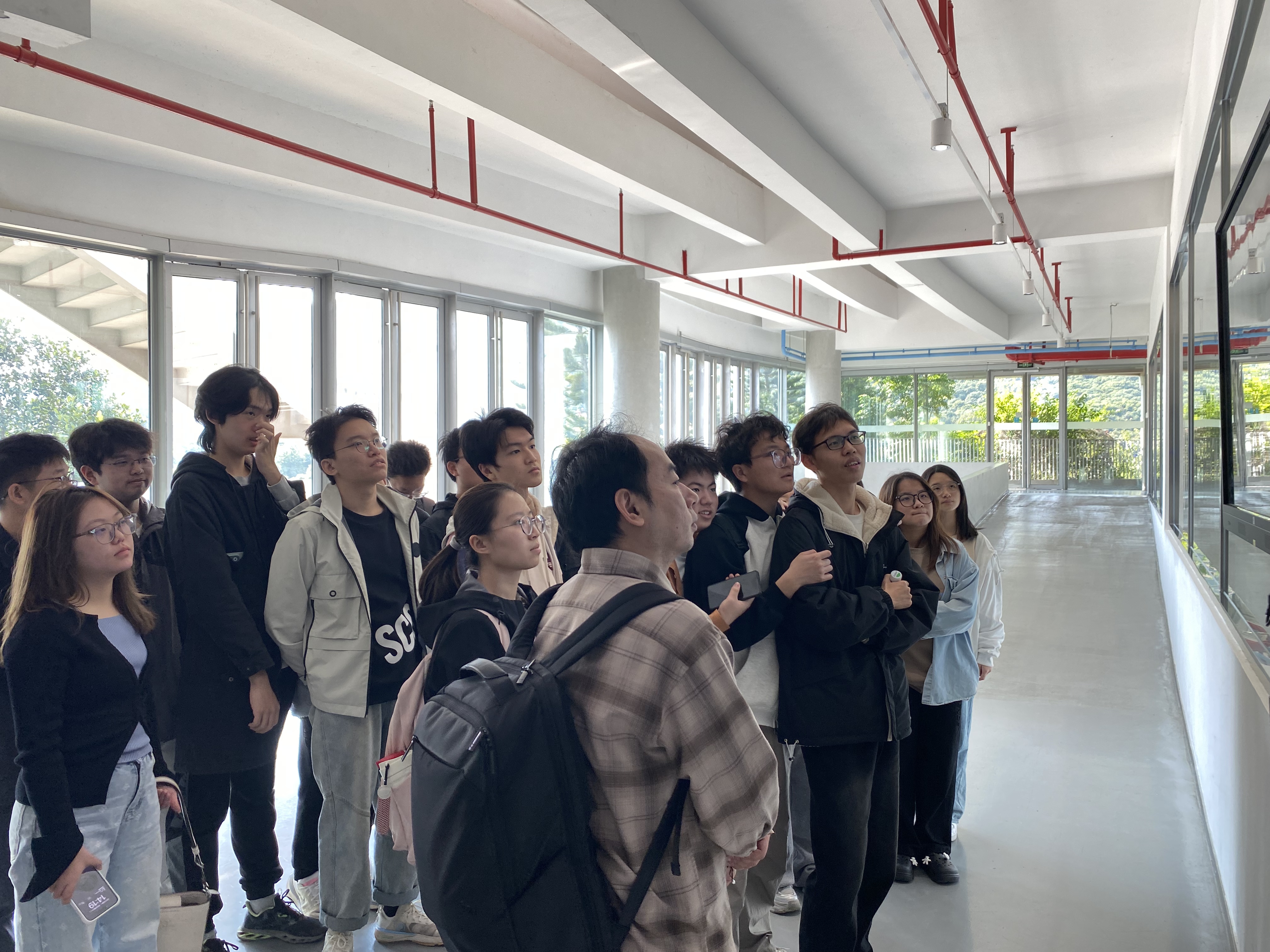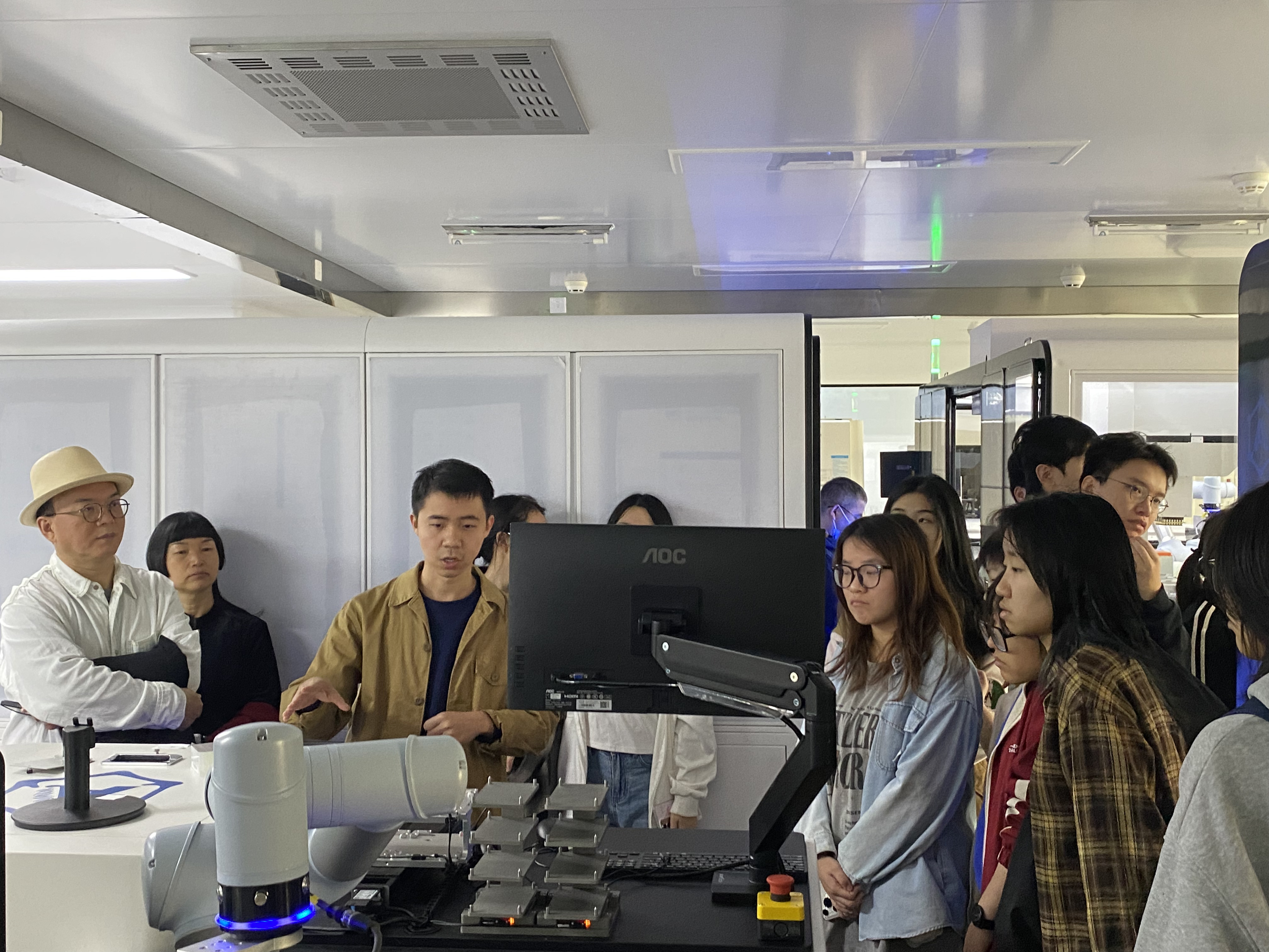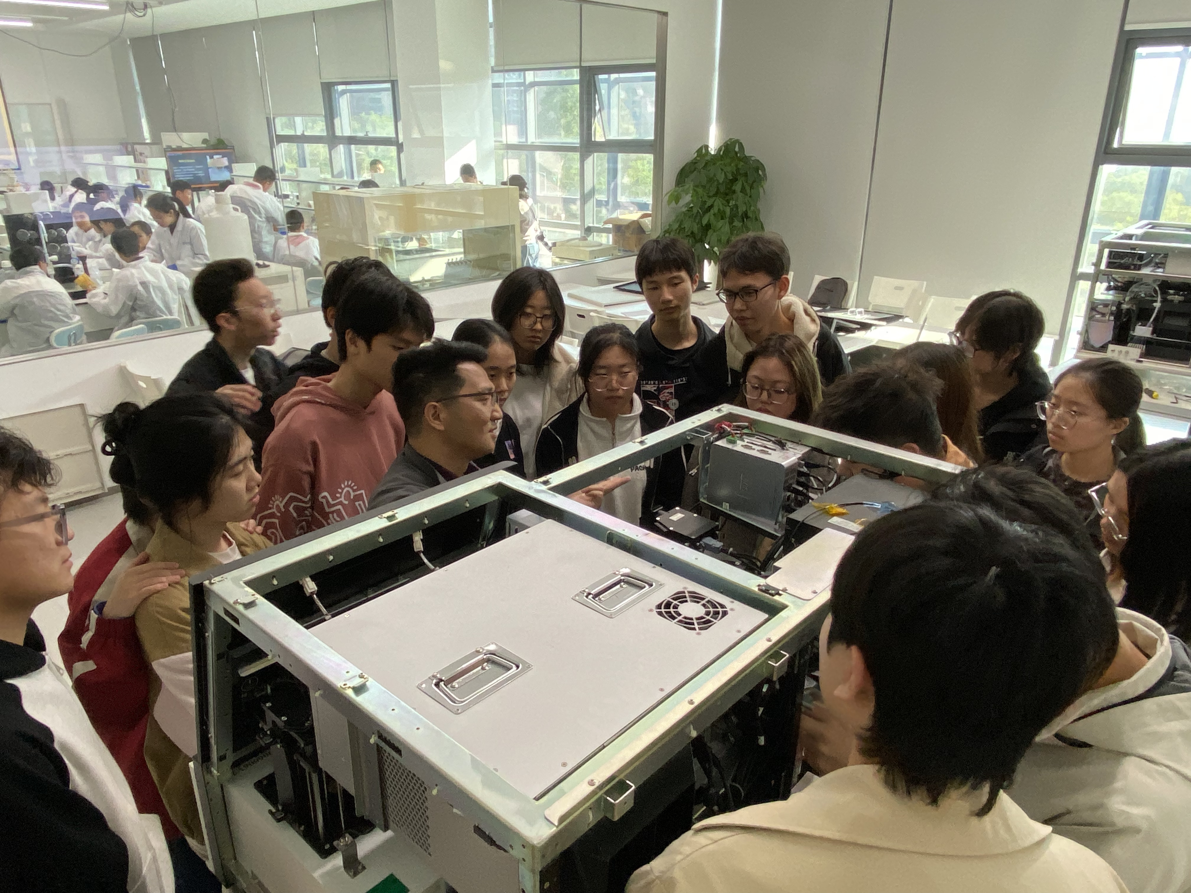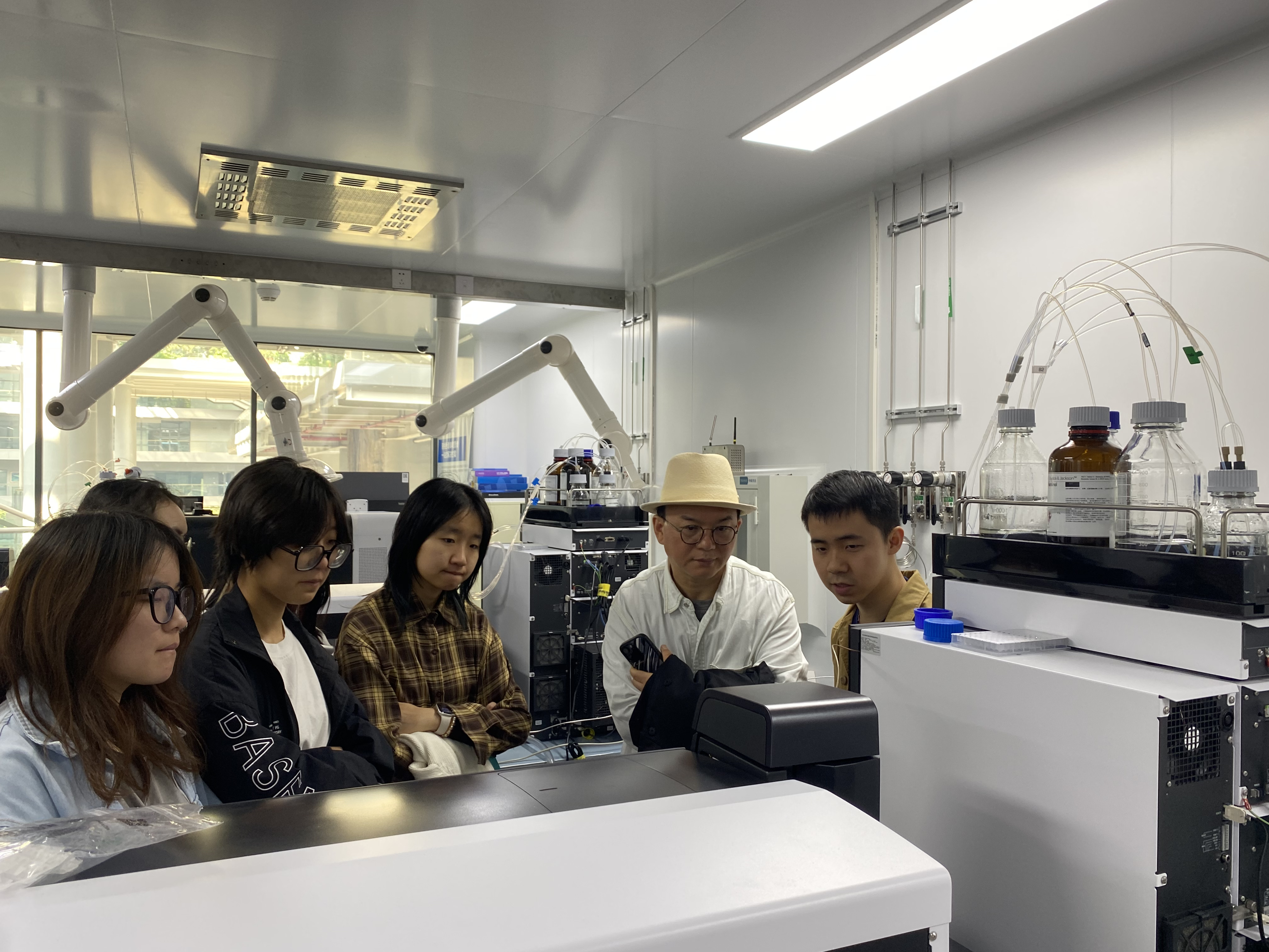 在深圳华大时空中心近距离了解和体验华大集团在生命科学领域的先进技术和应用。华大教育中心丁林老师先向同学们介绍华大集团的发展历程和研发成果。随后,同学们通过互动讨论和实地观察,一同参观了华大基因的长读长测序平台、自动化实验室等重要研究场所,深入了解了基因测序领域的技术和设备的飞速发展史。