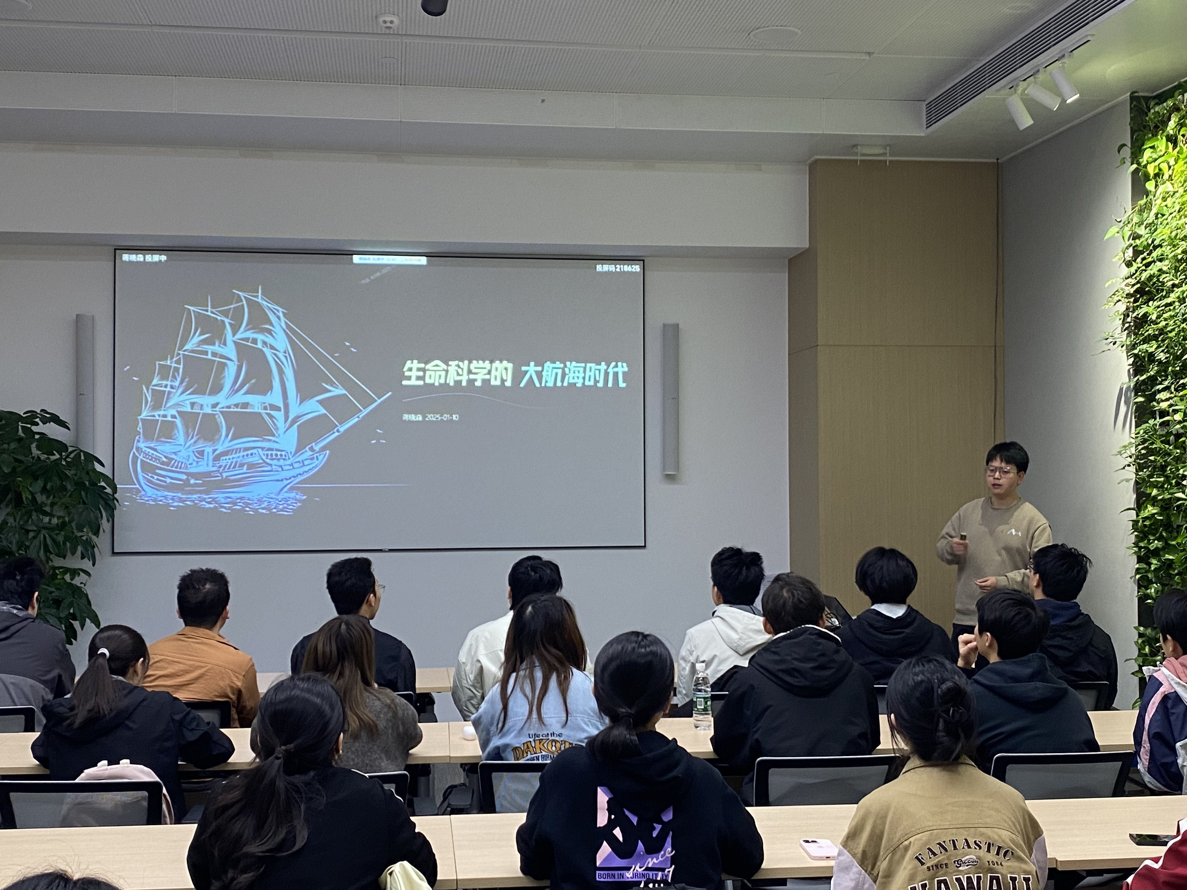 华大集团蒋晓森博士以“生命科学的大航海时代”为主题剖析了当下人工智能时代生命科学与AI技术交融的现状,向同学们分享了华大集团在生命科学领域的前沿发展动向,深入解读科研成果如何巧妙转化为实际产业应用。最后,蒋博士鼓励同学们要勇敢打破自我局限,深度挖掘自身兴趣所在,以长远目光为指引,精心规划未来职业发展,在生命科学的浩瀚海洋中找准属于自己的航向。