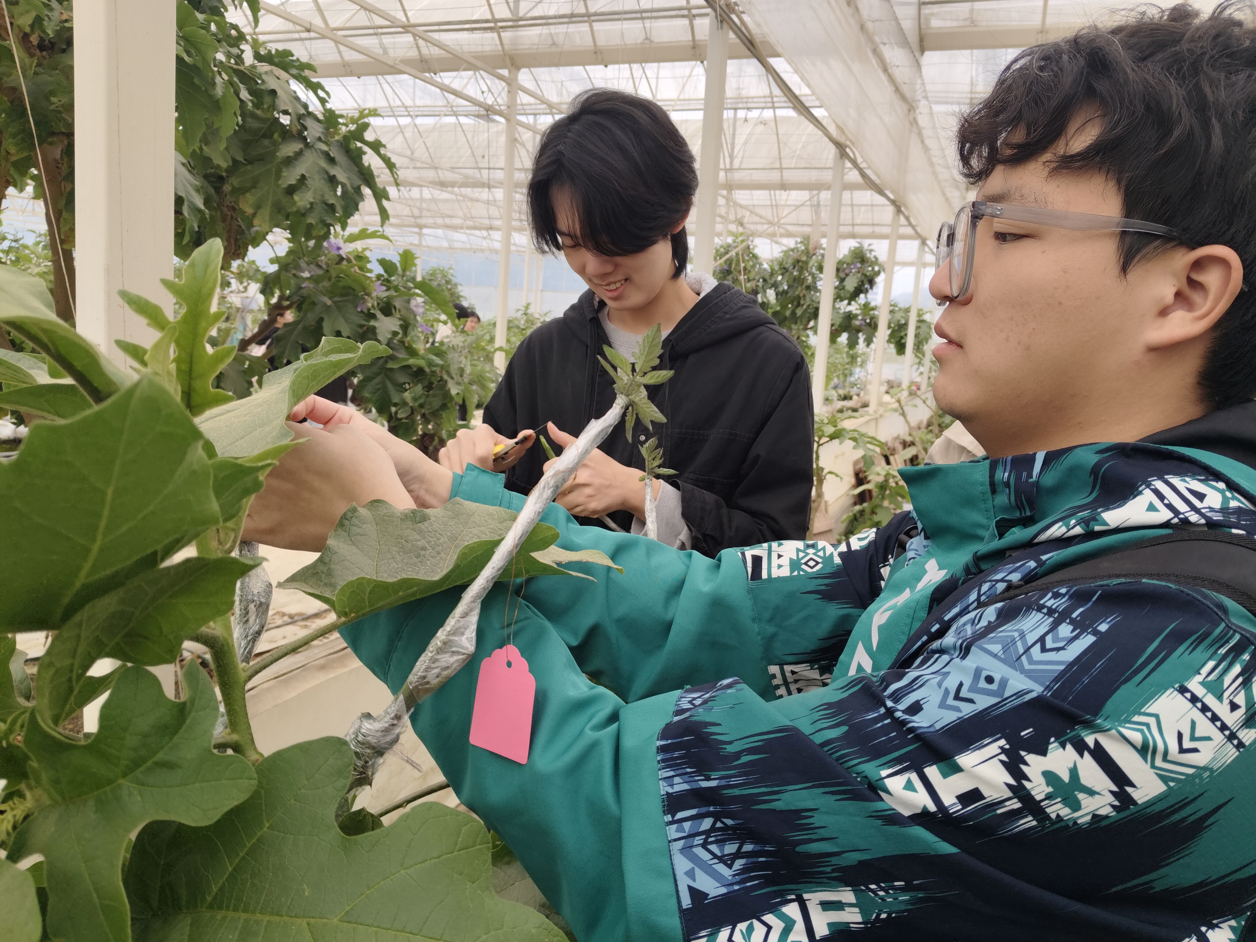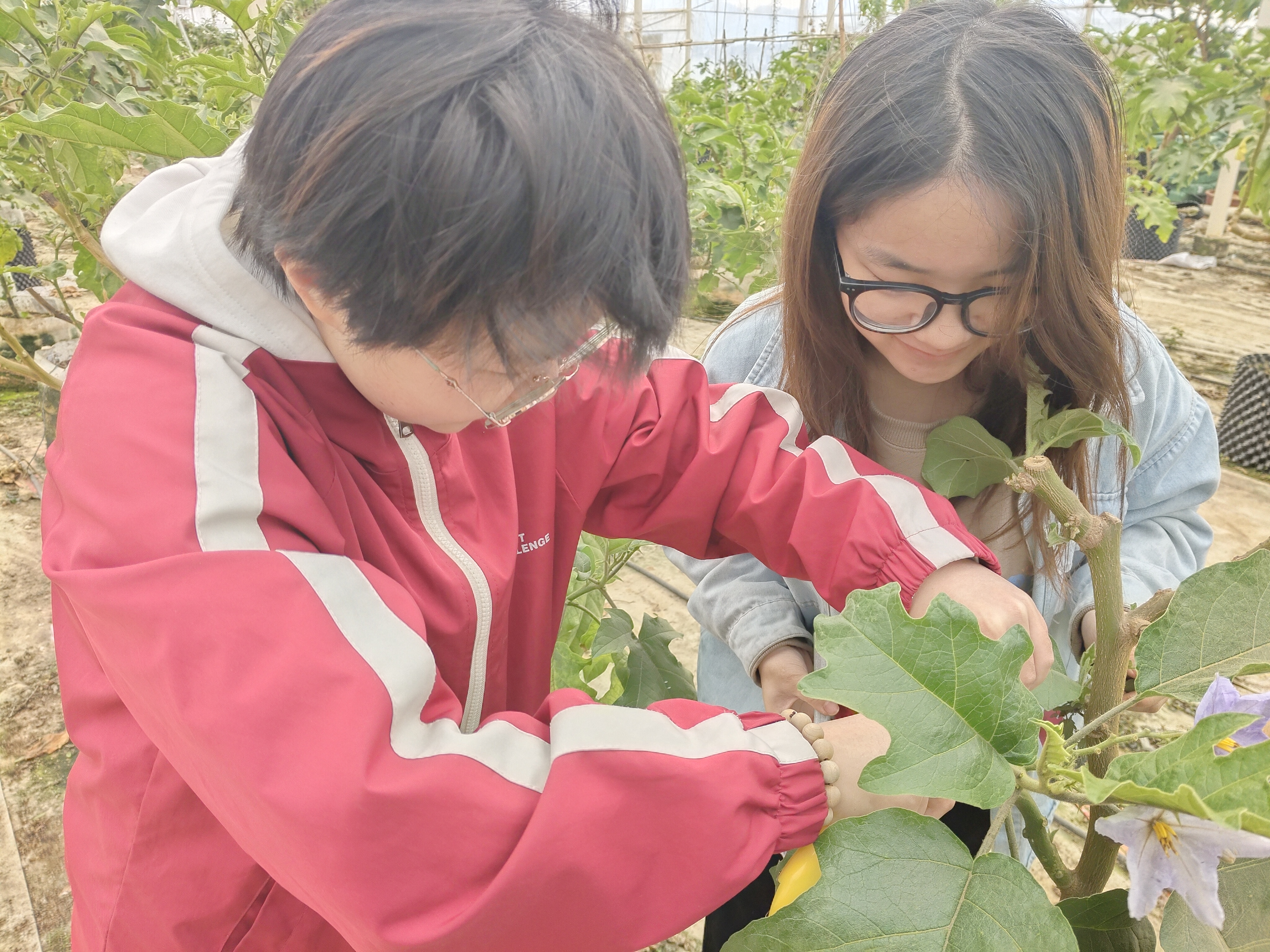 在深圳华大生命科学研究院,同学们在工作人员带领下参观了“多宝茄树”种植大棚,在学习了嫁接可提高农作物的抗病、高产相关知识的基础上体验了将茄子、辣椒、西红柿等嫁接在砧木上的全过程。在实践中增长知识、提升技能的同时,更进一步激发了同学们对生命科学专业学习的兴趣,为未来的学术探索和职业发展奠定了坚实的基础。