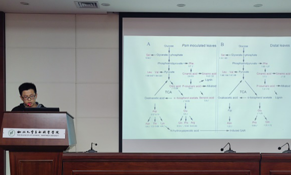19日下午,“生命科学探索”论坛——优秀学术海报展示在博望报告厅举办,由副经理付爱根教授主持。海报论坛期间评选出的2名博士和8名硕士研究生在会上详细讲解了自己的学术海报以及科研成果,同学们就讲解内容进行提问与交流。