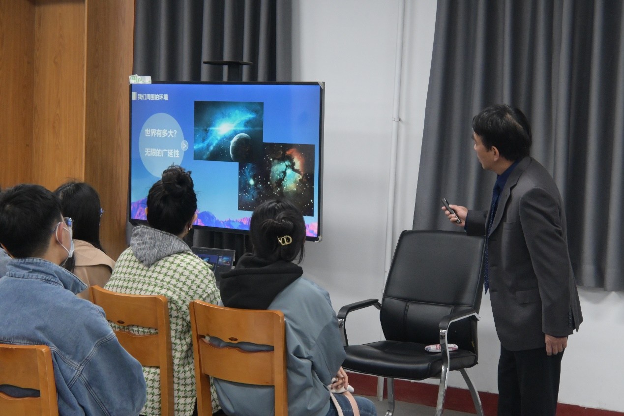 交流会开始后,朱教授就生命进化过程中的变化频率与变化角度的多样性进行了简单概述。朱教授以“在千变万化的环境中,如何走在进化的前端”的思考作为切入点,讲述了人类所生存的环境大至宇宙般广袤无垠,小至一杯水的原子倒入四大洋中也能被随机舀中。以同学们熟知的角度一步步代入交流会的主题,使同学们能够跟上节奏,加深对主题的理解和思考。