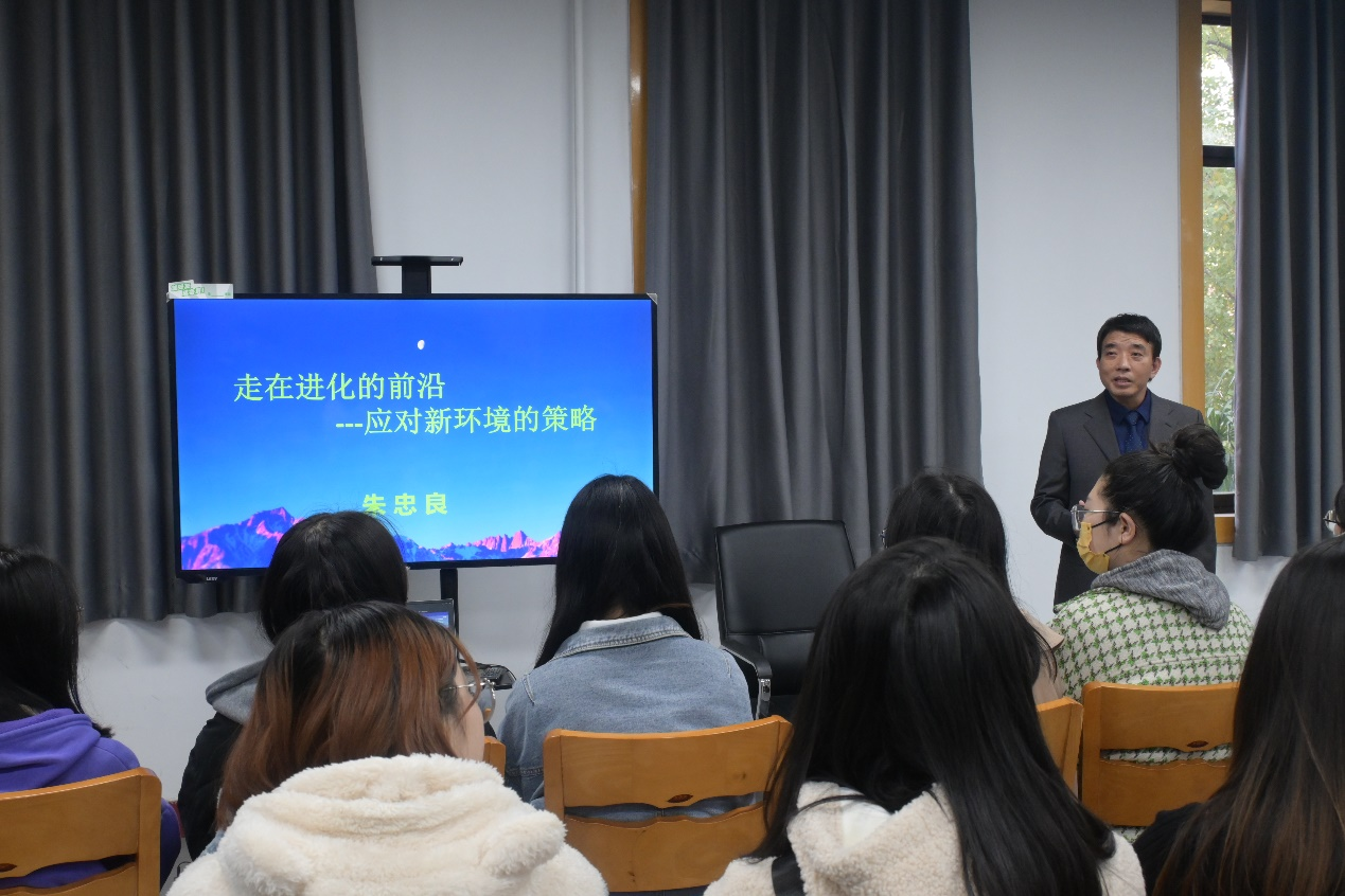 此次师生交流会中朱教授分享了人类进化的路程和很多释放压力的方法。朱教授表示希望研究生同学们在生活、学习、工作中不断挑战自己,用思考的方式应对环境带来的挑战,与时俱进,不禁锢自己的思想,从而走在进化的前端!