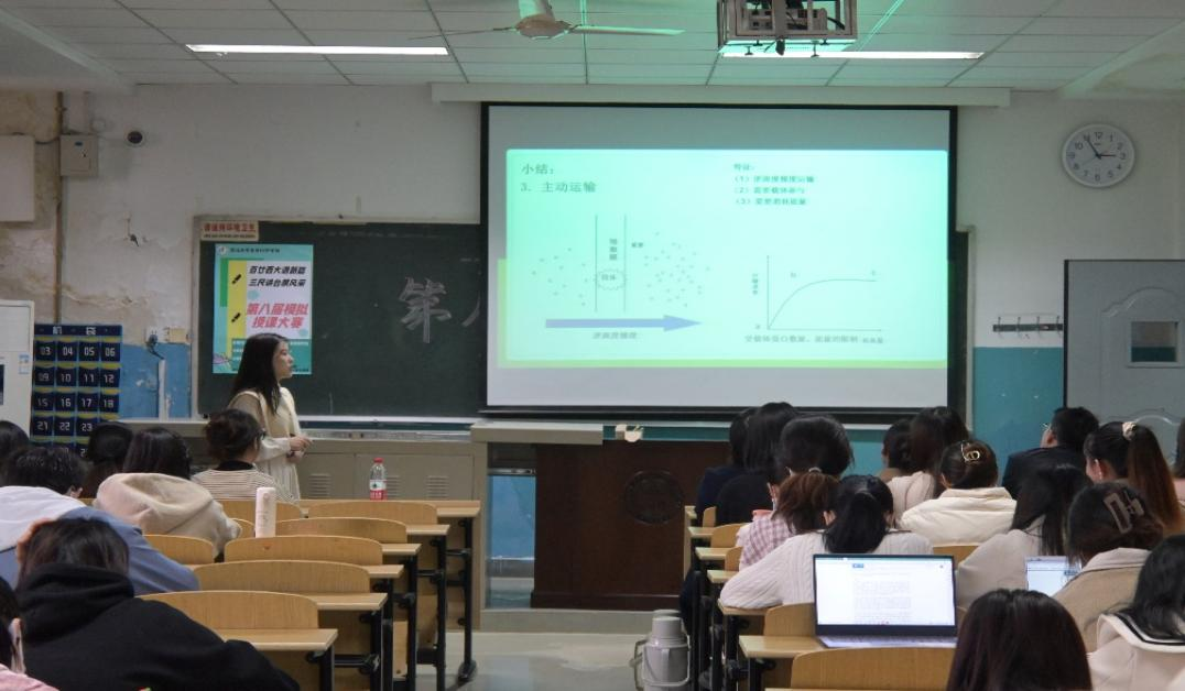 每一位参赛选手都满怀热情,将自己的授课内容完美呈现,以认真负责的态度对待此次比赛。首先上场的1号选手王茜以洪亮的声音、自信的眼神讲授了“染色体变异”,并赢得了观众热烈的掌声;2号选手刘亚楠沉重冷静,带领观众回看“小分子运输的方式”;3号选手蒋陈龙以幽默风趣的语言讲解“失爆”要点,使在场观众回味无穷;4号选手宋敏的“西大见证的近代史”也使观众发出阵阵惊叹。后面其他选手们也都各显风采,授课“DNA复制”、“琵琶行”、“细胞癌变”、“英语六级高分攻略”等内容,精彩的表现赢得了在场同学的阵阵掌声。