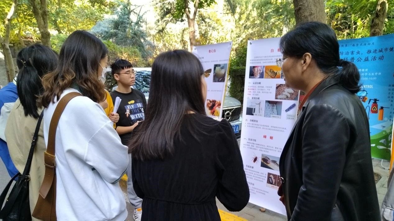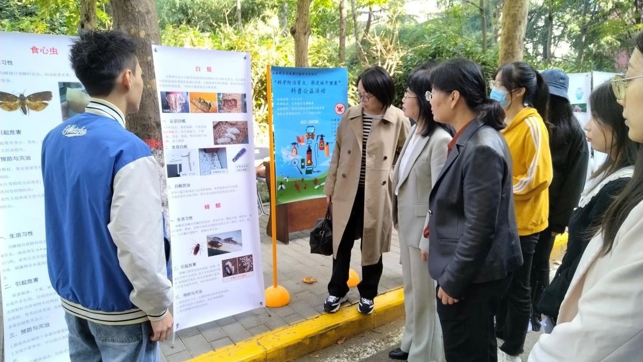 11月1日-11月3日,公司以“城市害虫及其综合防治”科普服务为主题,公司昆虫团队邢连喜老师、苏晓红老师、谭江丽老师、于海丽老师、刘扬老师指导,于文博楼前举行为期三天的第17届研究生学术月——“科学防治害虫,推进城市健康”科普公益活动。十余名研究生承担讲解、服务工作。
