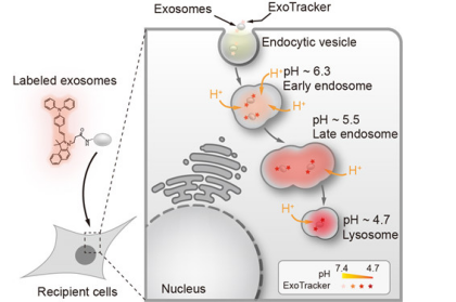 近日,十大外围足球平台app关锋教授团队在细胞外囊泡的分子探针设计取得了新进展,研究结果以研究文形式发表在Chemical Communications,题名ExoTracker: a low-pH-activatable fluorescent probe for labeling exosomes and monitoring endocytosis and trafficking”。