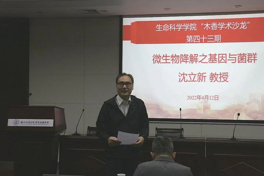 (沈教授进行关于微生物降解基因及菌群的研究报告)