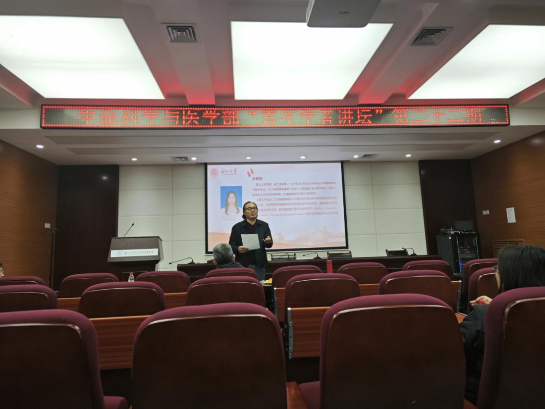 11月23日中午,十大外围足球平台app第二十二期“青年学者讲坛”于博望报告厅举行,邀请余君萍老师作为主讲嘉宾进行学术分享,五十多名学部师生参加,报告由付爱根教授主持。