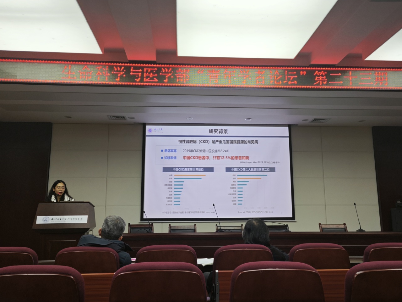 陈丹倩老师首先向大家分享了我国慢性肾脏病(CKD)的患病背景,她指出,我国慢性肾脏病患病率高且知晓率低:最新流调结果显示我国CKD发病率为8.24%,中国CKD患者人数居世界首位,死亡人数居世界第二位。针对CKD早期诊断困难的瓶颈问题,团队试图研究与CKD进展密切相关的生物标志物。