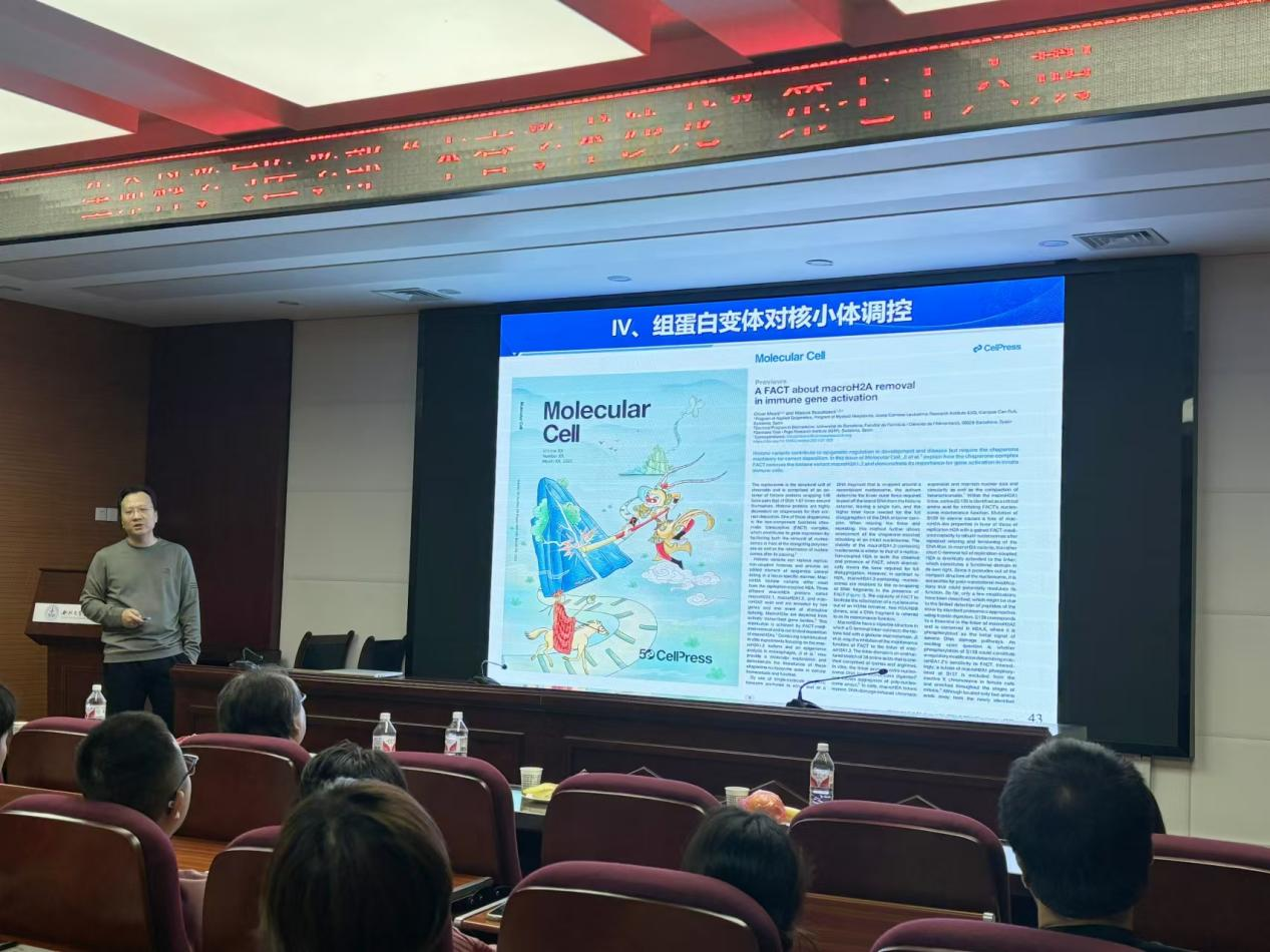 李伟老师的报告紧密围绕“染色质动态结构与功能调控的单分子层面探索”这一主题展开。他首先深入剖析了染色质结构的组装问题,详细阐述了染色质从基础核小体到高级染色质结构的层级组装过程,以及这一过程如何决定表观遗传信息的传递。同时,他还讨论了染色质结构障碍的克服策略,为理解染色质功能提供了新的视角。