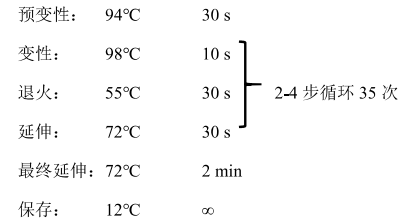 3. 将 PCR 管放入 PCR 仪中,按照如下程序进行扩增。