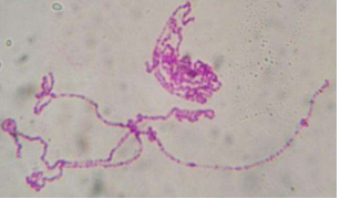 2. 进行染色体标本的制备时,一般取自细胞分裂旺盛的组织,如骨髓、淋巴细胞以及通过人工培养的悬浮液。如将秋水仙素注射到动物的腹腔内,经肠系膜吸收,并可转运到骨髓,结果使正在分裂的细胞不能形成纺锤体,染色体停留在中期状态,经过处理和制片后就可以清楚的观察到染色体。优点是省却了细胞培养,可获得大量分裂的细胞。缺点是:这种方法是属于侵害性的,只适用于动物个体较小、来源丰富的材料。大型动物可骨髓穿刺,例如临床血液疾病的分析。