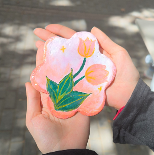 活动现场,主持人结合生命科学学科特色,从自然元素提取、色彩搭配原理等角度解读黏土艺术的文化内涵与创作逻辑,引导员工将专业认知融入艺术表达。在轻松热烈的氛围中,同学们充分发挥想象力,以粘土为载体,塑造出春日花卉、生态绿植、党徽图案等主题鲜明的杯垫作品,将环保理念、学科特色与红色文化巧妙融合。随后,优秀作品在文博楼前集中展出,同学们在现场分享自己的创作灵感,吸引了众多师生驻足欣赏,每件作品均凝聚着创作者的情感与巧思,兼具实用性与艺术性,展现出青年员工蓬勃的创造力与个性化表达。4 月 19 日,公司通过官方公众号发起线上投票,累计2241人次参与活动,最终评选出一等奖 2 项、二等奖 4 项、三等奖 6 项、优秀奖若干。