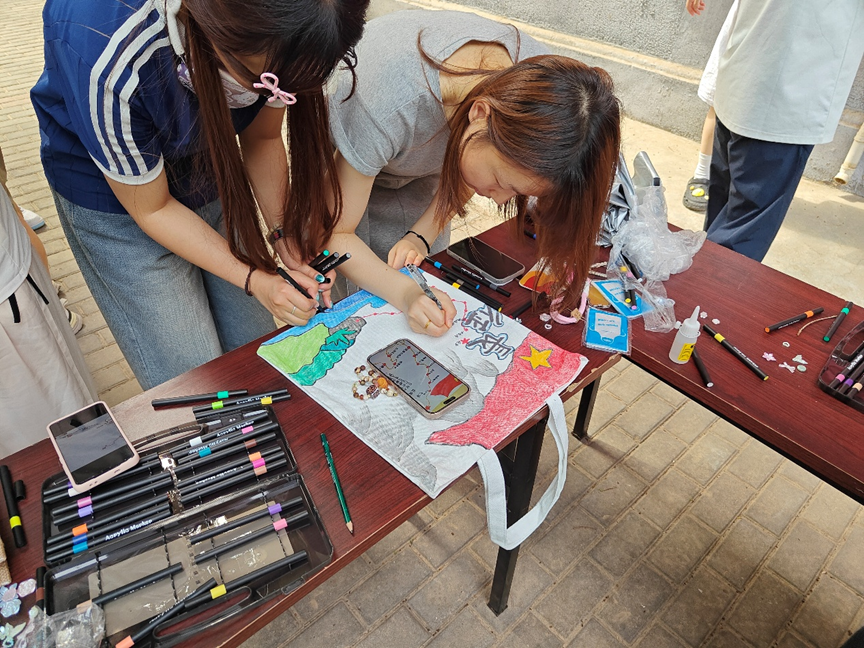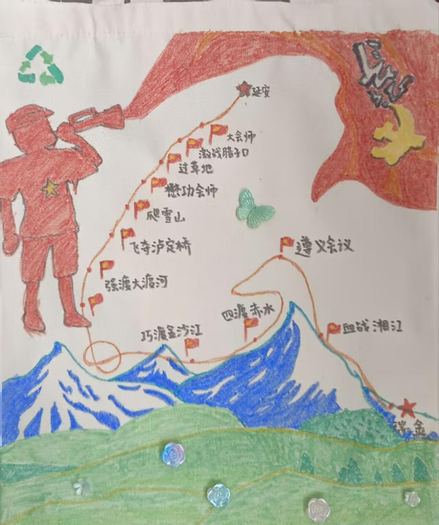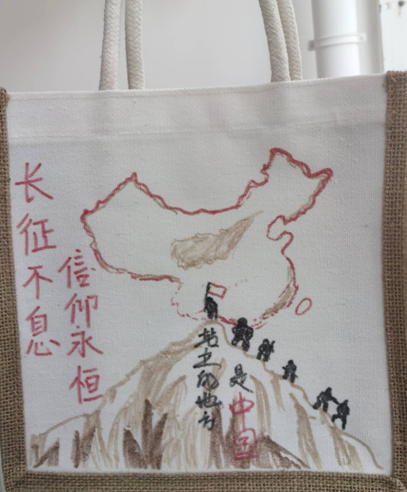 本次活动精心设计“环保工艺深度体验”“ 创意制作”“成果展示与评审”三大核心环节,吸引太白校区各专业员工积极参与。在创意制作环节,同学们充分发挥专业所长,利用可循环帆布、废旧麻布等材料,通过天然染料手工印染技术,将长征路线图、雪山草地等红色文化符号巧妙融入环保袋设计。部分作品还特别标注生物降解材料特性说明,将学科专业知识与红色文化传播有机结合。