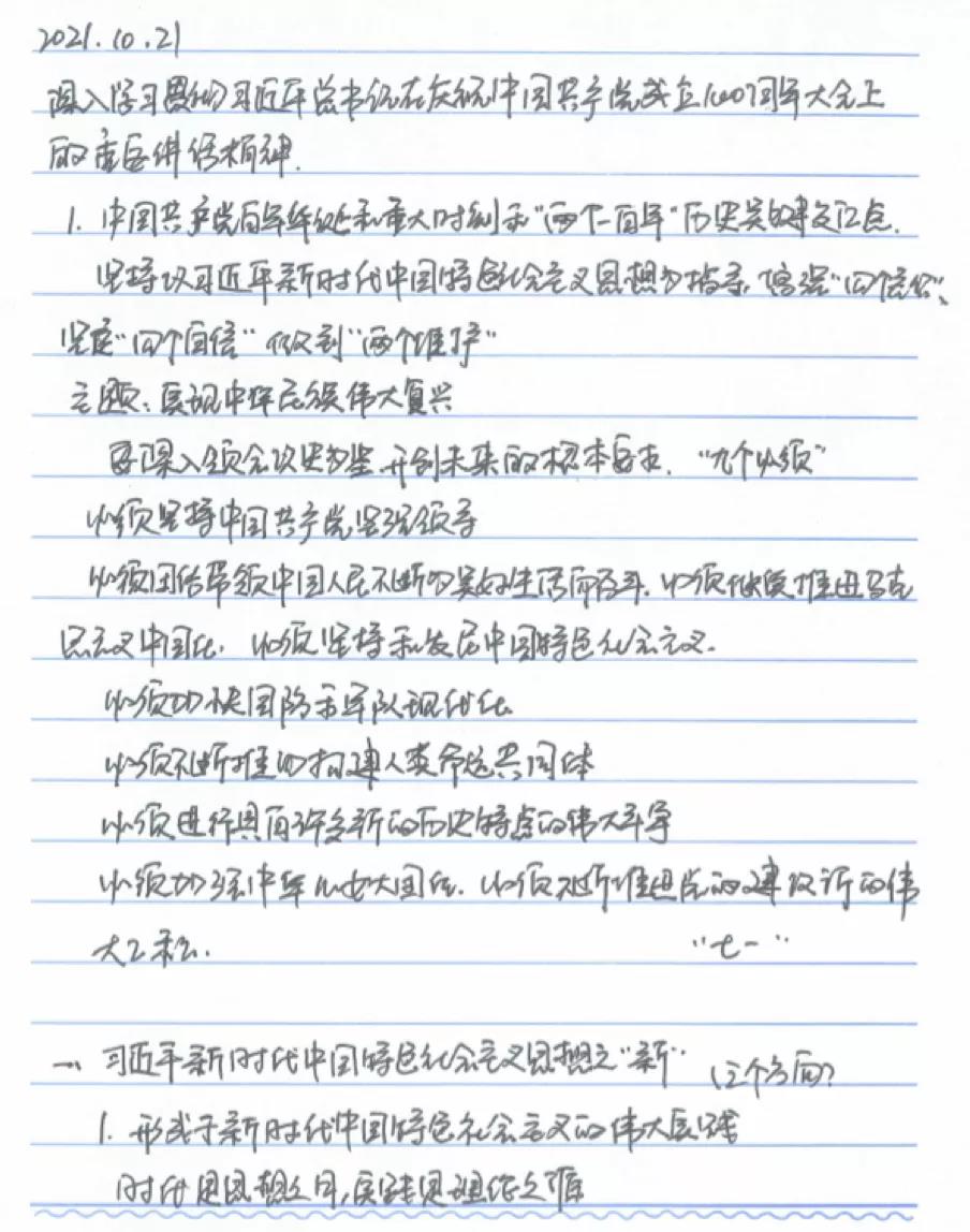 我很荣幸可以在中国共产党成立一百周年之际接受入党积极分子党课培训。课程从习近平新时代中国特色社会主义思想的讲解开始,以党的基本知识为主,结合党史,通过课堂讲授与专题报告等方式进行,进一步加深了我对于中国共产党的认识。老师们的细心讲授,帮助我确立了远大的理想信念和正确的世界观、人生观、价值观。非常感谢党支部给予我的珍贵的学习机会。今后,我将继续学习历史,从先辈们的征途中继承伟大精神品质,赓续红色血脉,承担责任,走好自己的“长征路”!