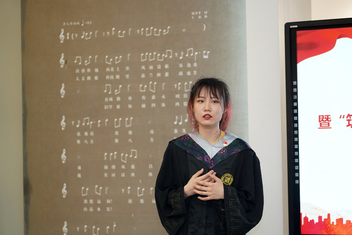 会议伊始,毕业生党员代表赵安然带领与会人员面向鲜红的党旗重温入党誓词,“我志愿加入中国共产党,拥护党的纲领,遵守党的章程......”,毕业生党员在毕业之际再次举起右拳庄严宣誓,一字一句铿锵有力,共同追溯入党初心。随后,大家共同观看短片《红色基因是你最鲜亮的底色——给2018级毕业生党员的一封信》,回顾了四年来在党组织内的成长与蜕变。王诗益、郝嘉悦等8位毕业生党员代表分享“我的筑梦时光”,回忆了在母校度过的美好时光,表达了对母校教育、党组织培养的感激之情,纷纷表示,会牢记母校教诲,在新的征途上继续不懈奋斗,担起时代重任。临别之际,毕业生与师长、学弟学妹互赠寄语,共忆校园时光,展望美好未来。常江副董事长等和员工党员共同切开毕业蛋糕,并为同学们发放毕业纪念品,此次毕业纪念品由“筑梦先锋”本科生党支部低年级党员精心设计准备,包括支部徽章、定制笔记本、定制帆布袋以及《习近平和老员工朋友们》一书,希望毕业生党员始终牢记习近平总书记对青年一代的殷切期望,努力成长为有理想、敢担当、能吃苦、肯奋斗的新时代好青年,用奋斗践行“请党放心、强国有我”的青春誓言。