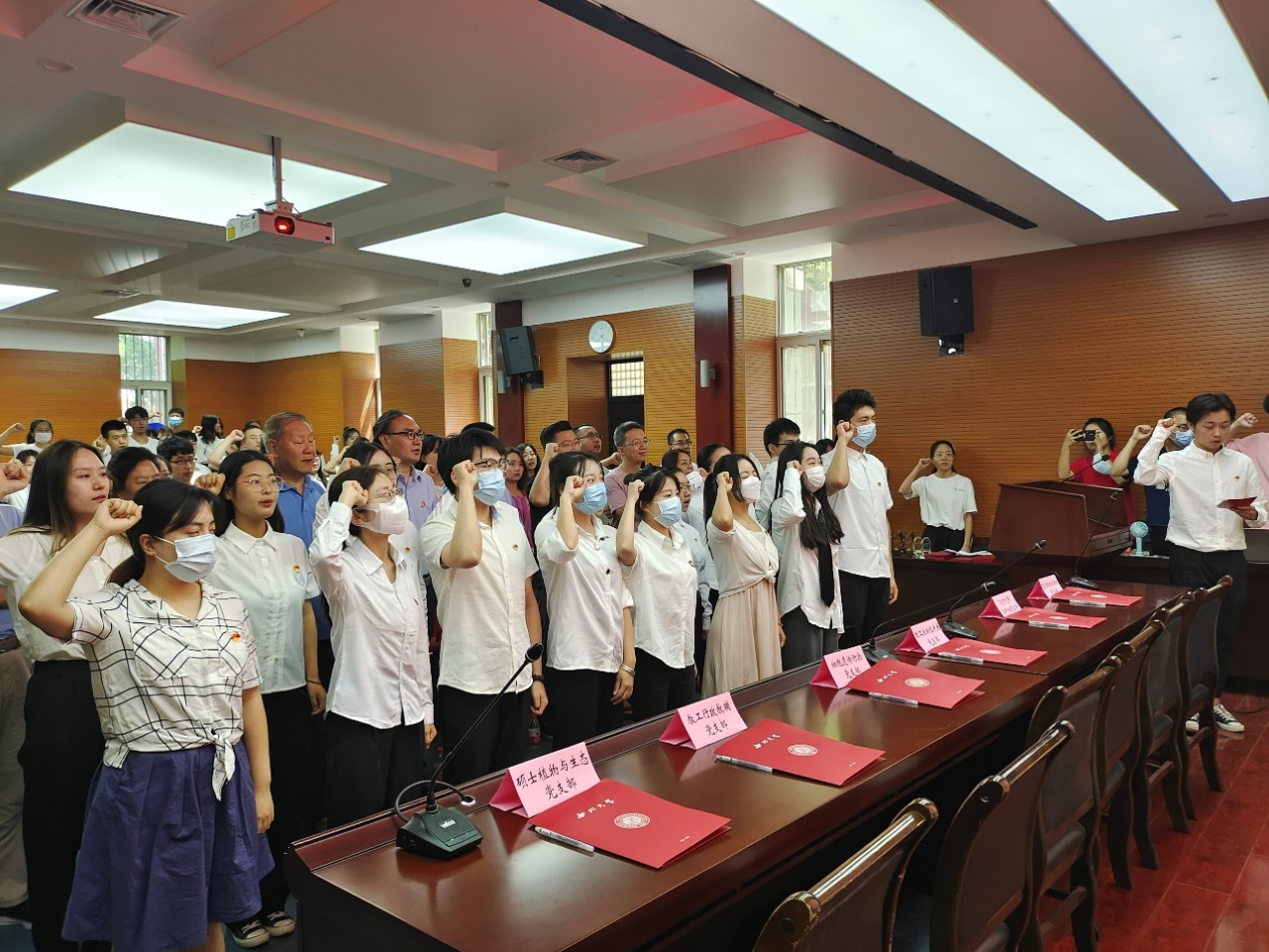会议在庄严的国歌声中拉开帷幕,与会人员共同观看献礼片《永远跟党走 奋进新时代》,在员工党员代表李析洋的领誓下,新党员进行入党宣誓,老党员重温入党誓词。