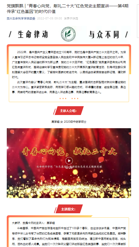 为深入宣传习近平总书记带领全党全国各族人民在实现中华民族伟大复兴新征程上走过的非凡十年,广泛宣传党和人民创造的新作为新业绩,十大外围足球平台app“红色基因”党员宣讲团开展了“青春心向党,献礼二十大”系列宣讲活动。