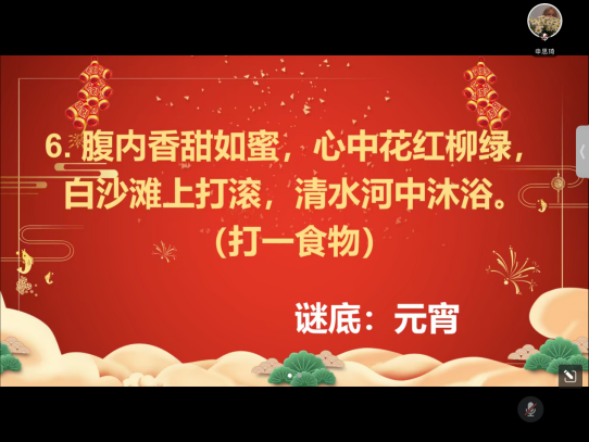 2月5日,“筑梦先锋”本科生党支部开展“红色灯谜庆元宵,月圆时刻盛世欢”主题党日活动,将理论学习与元宵节传统习俗相结合,通过学习传统文化、分享家乡节日特色、猜灯谜等形式大力弘扬中华传统文化。活动结束后,支部收集了同学们在元宵节的精彩时刻与心得体会,带领员工党员、积极分子在多样体验中激发出建功新时代的热情与担当。