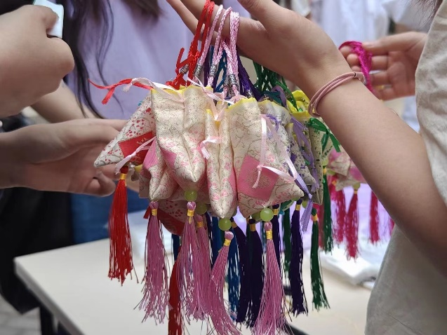活动伊始,主持人为在场同学详细介绍了活动背景,并对活动的整体流程以及比赛的评判标准进行阐述。随后,同学们积极参与到香囊制作环节中,他们充分发挥团队协作精神与专业技能,巧妙地将各种中药材进行搭配组合,制作出一个个既美观又实用的香囊作品,有的具有助眠安神功效,有的能够驱蚊防虫,有的具备疏肝解郁的疗效。最后,两个参赛小组的组长分别上台分享了他们的创作成果。楚越组以菖蒲、远志、藿香、薰衣草、冰片和花椒为原料,制作了一款具有清心提神效果的香囊。而石贤钢组则选用了白蔻、薰衣草、远志、藿香、肉桂和冰片等药材,打造出了一款安神助眠的香囊。他们希望通过这些香囊,帮助人们达到神志清明、心神宁静的境界。此次活动吸引了近三百名同学积极参与,共收到87份充满创意与匠心的海报和香囊作品。