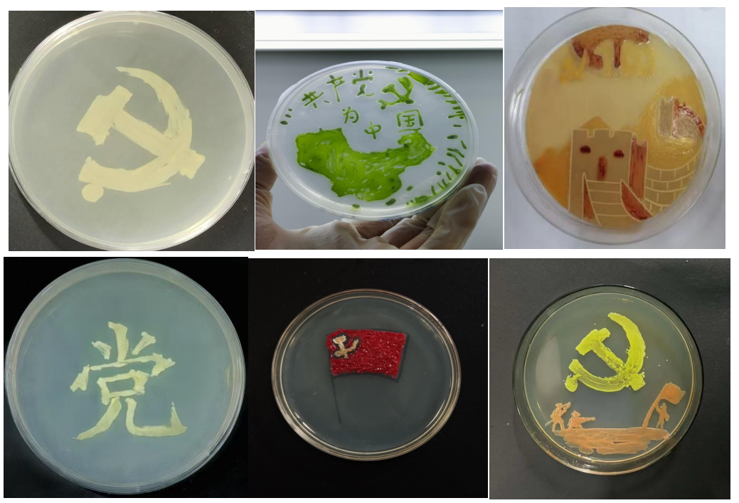 本次活动由线上作品征集、线上投票、优秀作品校园展示三阶段构成。自 12 月上旬活动正式启动以来,共收到各类投稿作品 111 份。同学们把微生物当作别具一格的 “画笔” 与 “颜料”,运用所学专业知识,依靠扎实的专业技能,进行主题创作,有的同学用菌液书写 “党” 字,画党旗党徽;有的同学以党史故事为灵感,创作出一幅幅充满巧思的画作,将爱国爱党之情在作品中生动展现。线上投票环节反响热烈,吸引了 876 人次积极参与,广大师生纷纷为喜爱的作品投出宝贵一票。经过综合评审,10 份优秀作品脱颖而出,相关获奖作品在员工社区皂角树广场、“筑梦先锋”党员服务角、党建工作站等进行陆续展出,吸引了众多师生驻足欣赏。