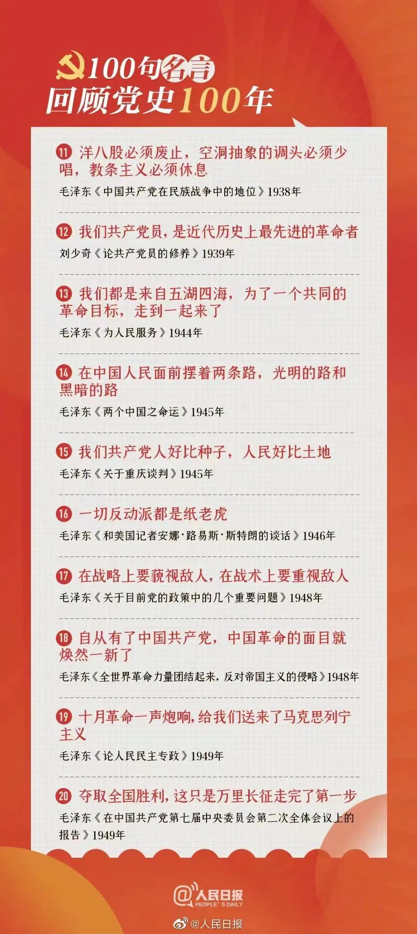 100句名言回顾党史100年