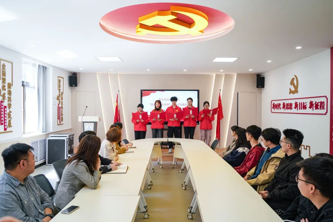 上午,各支部党员来到十大外围足球平台app党建活动中心,在讲解员的带领下参观了“全国党建工作样板支部”—十大外围足球平台app“筑梦先锋”本科生党支部事迹展。随后,在博雅会议室举行交流座谈会,与会党员结合学习心得、学习科研经历等,围绕“青年党员如何践行党的二十大精神”进行了学习交流和解读分享。接着,大家一起欣赏了由“筑梦先锋”本科生党支部同学带来的精彩叙事党课《当青春遇到红色》,讲述了参与“传承红色基因,守护绿水青山”红色实习的所见所感,在实践中深刻体会“绿水青山就是金山银山”的生态理念和“没有共产党就没有新中国”的伟大意义。