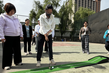 绿茵场上演绎精密操作,高尔夫挥杆似芯片点样,门球轨迹如神经传导,小小的门球和高尔夫球,承载着科研人在方寸之间展现的智慧与专注。