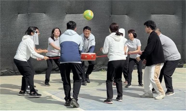 拉绳控鼓,颠球计数!鼓绳是精密的实验仪器连接线,小球的每一次跳动恰似实验中关键数据的波动,各位老师同心协力,共同用运动诠释科学精神!