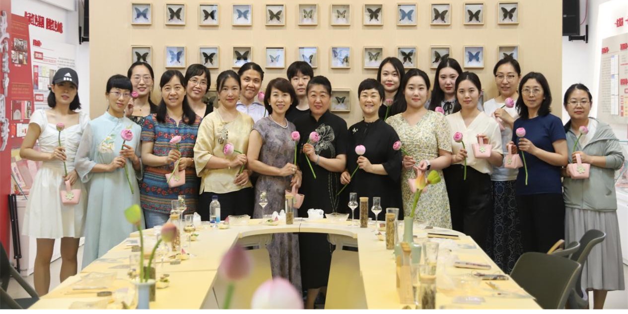 茶事体验区同样氛围热烈,专业茶艺师现场展示荷蕊熏制白茶的冲泡技艺,细致讲解了白茶的特性、荷蕊熏制工艺、折叠荷花造型以及夏日饮茶养生知识。教职工们轻啜茶汤、品尝莲子,在氤氲茶香和清新的莲香中深入感受传统茶文化的精妙,放松了身心。