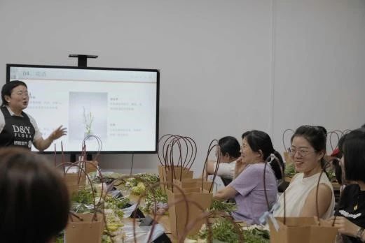 授课老师首先为学员讲解了插花的理论知识并详细介绍了插花的基本技巧与方法,包括花材的选择、色彩搭配、修剪以及构图原则等。并且准备了多种不同风格的插花案例,从传统的东方插花到现代的西式花艺,逐一讲解其特点和制作要点。课后,授课老师逐个指导学员通过理论与实践相结合的方式,亲自动手完成属于自己的插花作品。