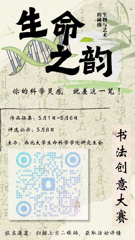 「生命之韵」生物书法创意大赛即将开始!科研人的浪漫用毛笔勾画DNA双螺旋用水墨晕染细胞分裂的瞬间无论你是实验室“手残党”还是书法“隐藏大神”这里都有你的舞台!