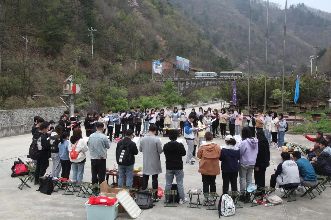 在植树活动前,同学们参观了陕西省龙草坪林业局观音山自然公司,并和老师们举行了别开生面的午餐会,围绕专业学习、爱校荣校、生态保护、实践实习等话题进行深入地交流。春意盎然中,同学们演唱了《我和我的祖国》,表达对祖国的热爱,诗朗诵《大秦岭礼赞》表达对巍峨秦岭的敬畏和生态保护的决心。
